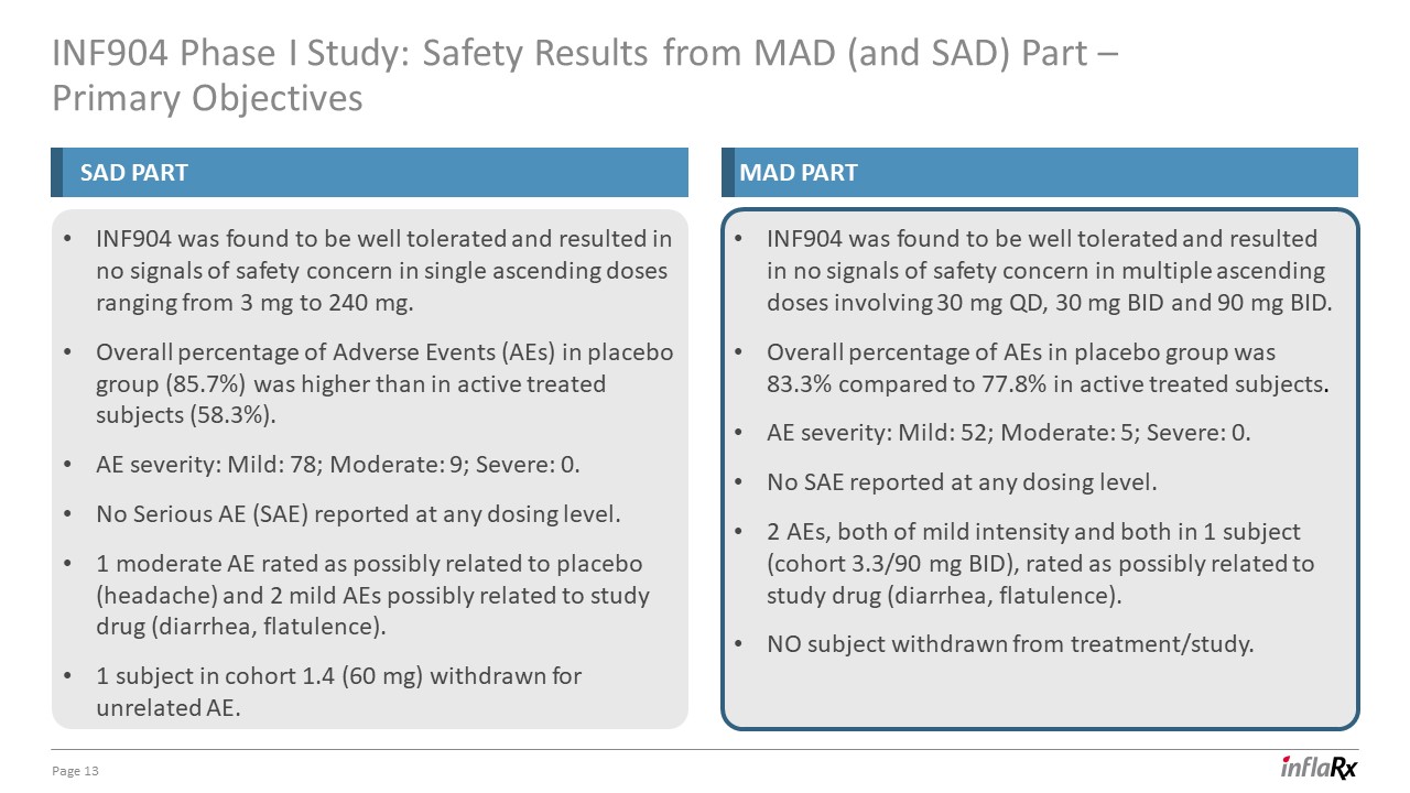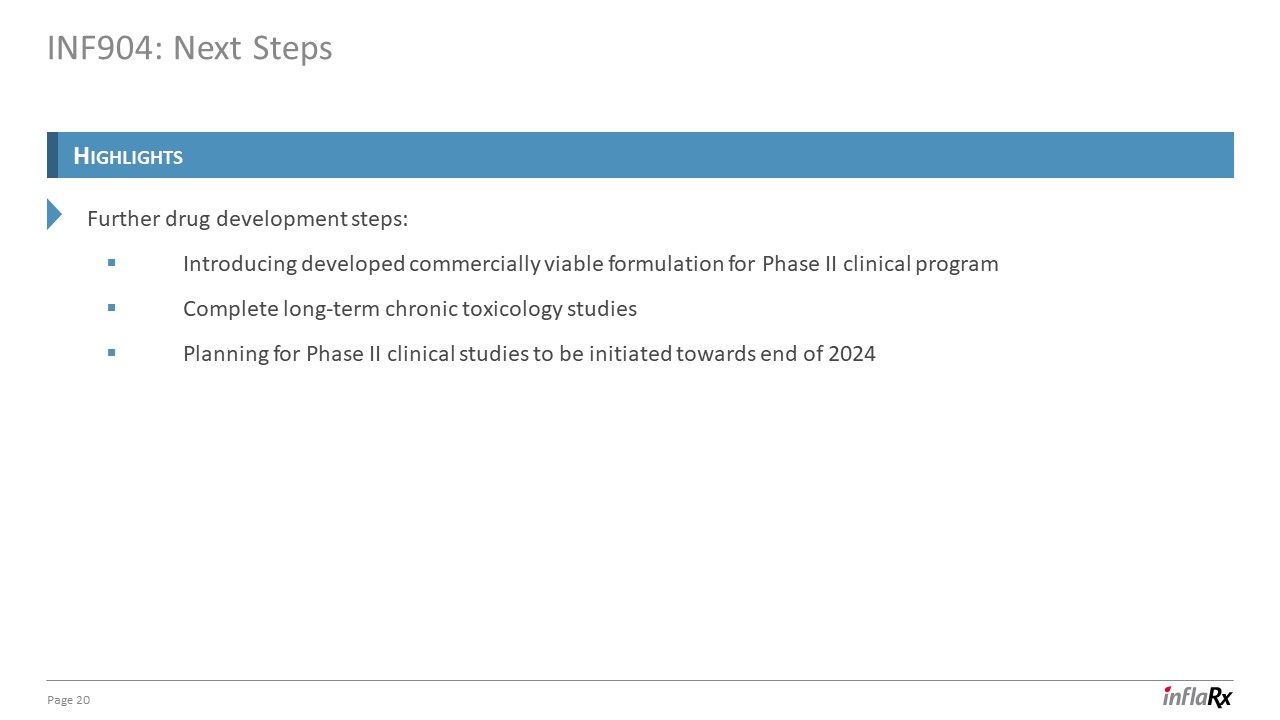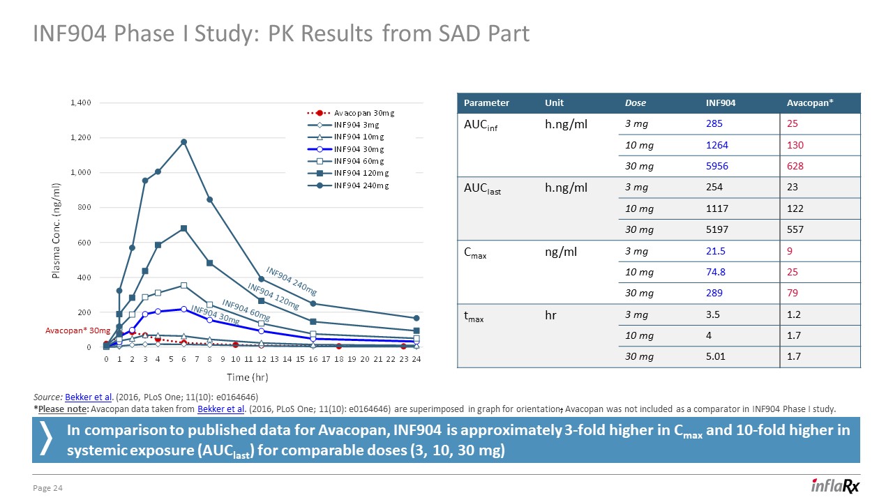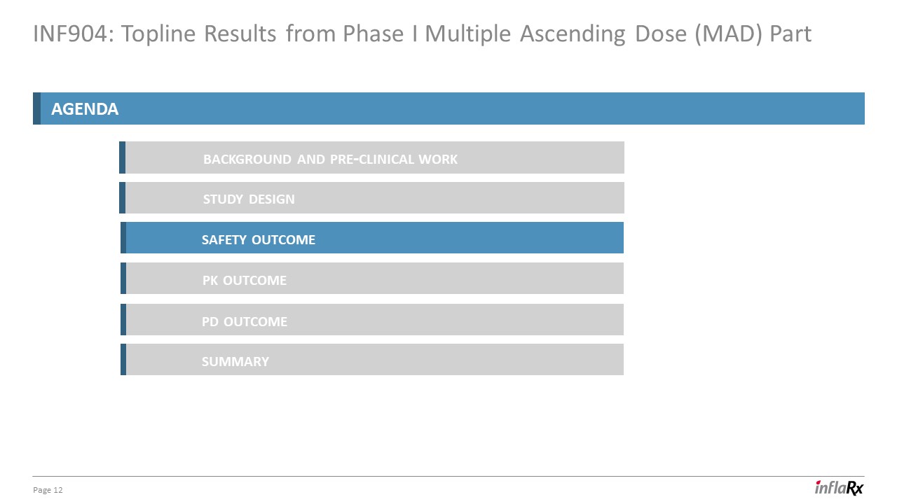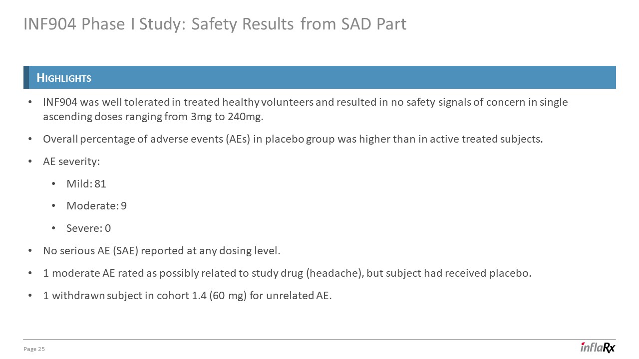 Dose (MAD) Phase I Study with C5aR Inhibitor INF904.” A copy of the press release is attached hereto as Exhibit 99.1 and is incorporated by reference herein.