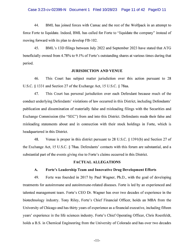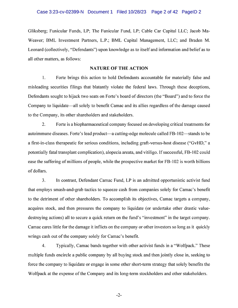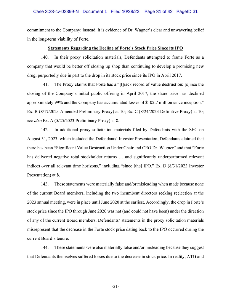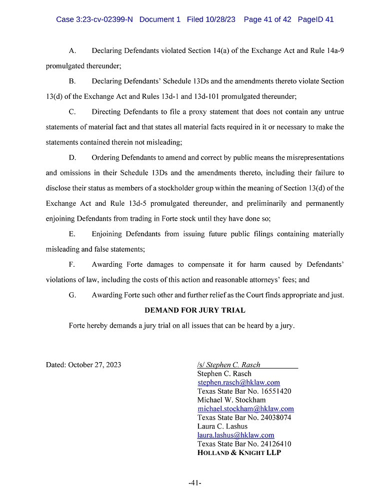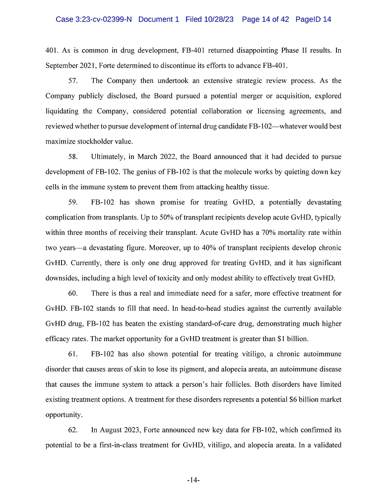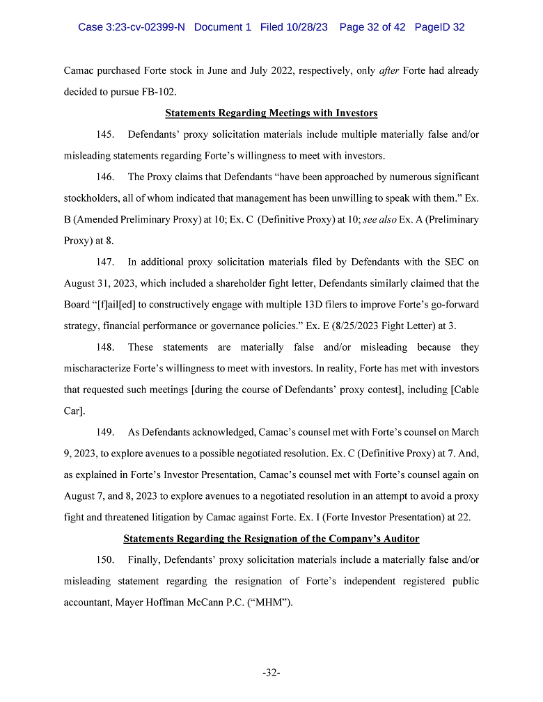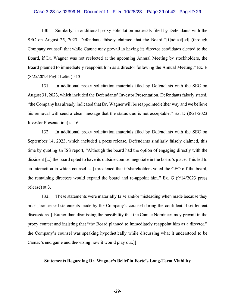 On November 20, 2023, the parties to the Texas Action agreed to a stipulation pursuant to which the defendants will respond to the Complaint on or before January 16, 2024. The District Court in the Texas Action entered the scheduling order on December 12, 2023.