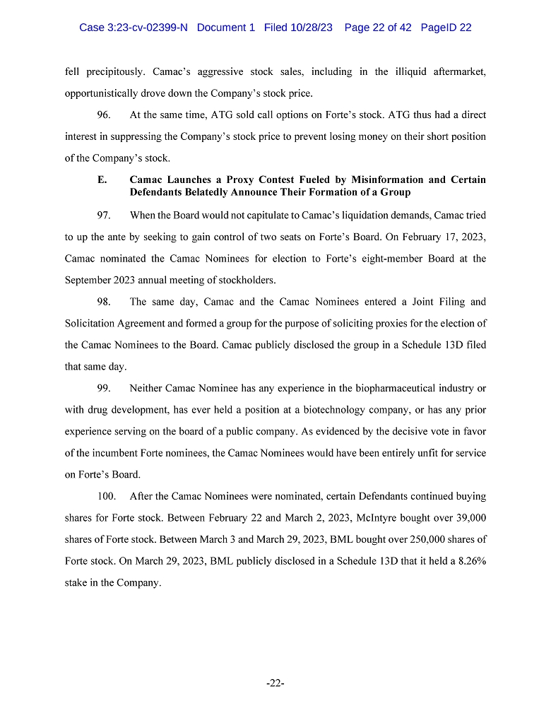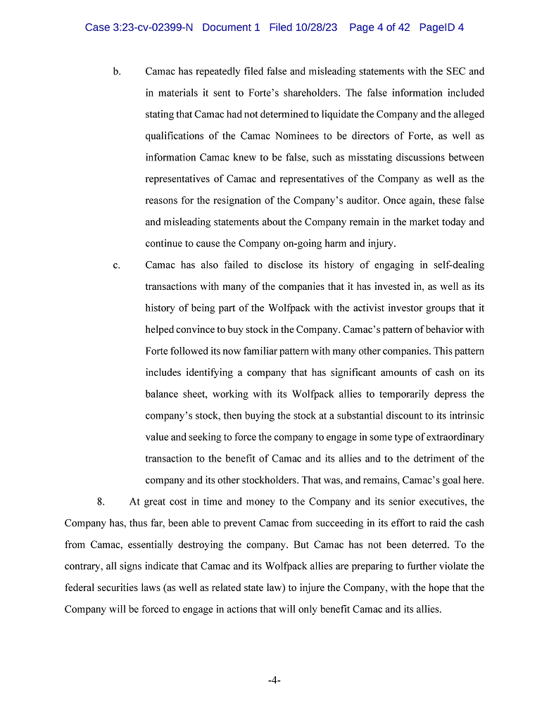 On September 19, 2023, the Issuer held its 2023 annual meeting of the stockholders. On September 20, 2023, the Issuer announced preliminary voting results purportedly demonstrating that the incumbent nominees were reelected. On September 21, 2023, defendants in the Delaware Action moved to dismiss the Verified Complaint. On October 23, 2023, Camac Fund filed a Verified Amended Class Action and Derivative Complaint in the Delaware Action, which alleges, among other things, breaches of fiduciary duty and wrongful dilution.