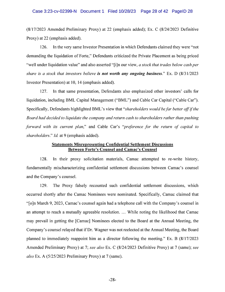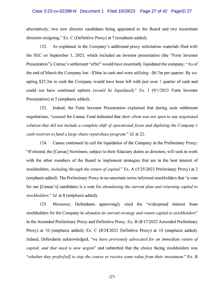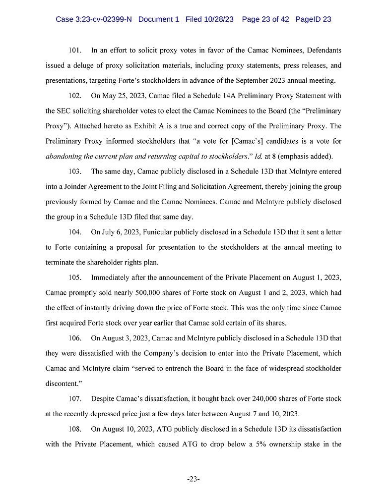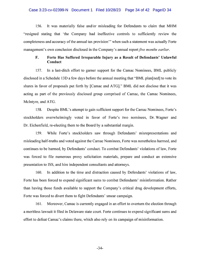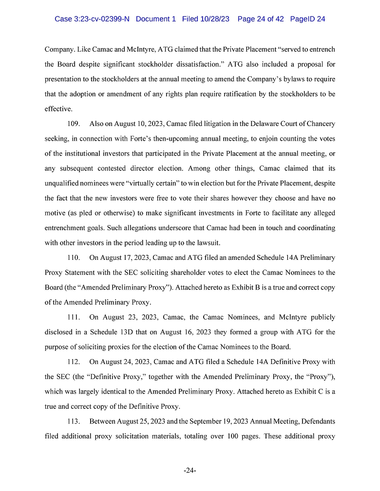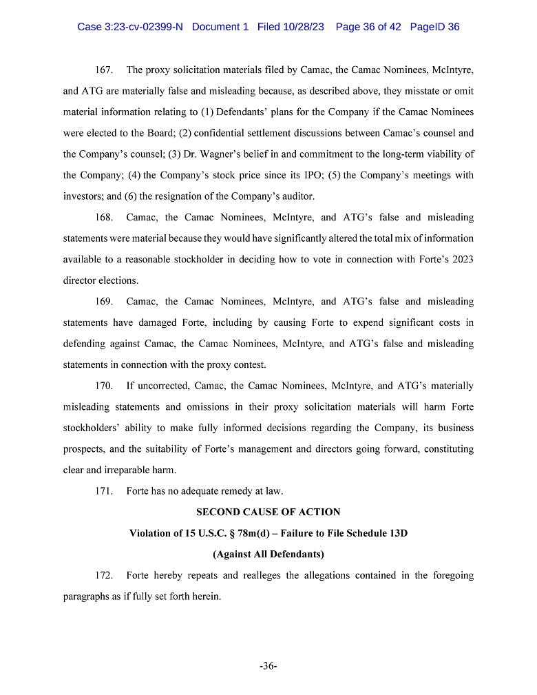 Also on August 10, 2023, Camac Fund moved for a preliminary injunction and expedited treatment in the Delaware Action. On August 17, 2023, the Court of Chancery granted expedited treatment and instructed the parties to schedule a preliminary injunction hearing following the Issuer’s 2023 annual meeting.