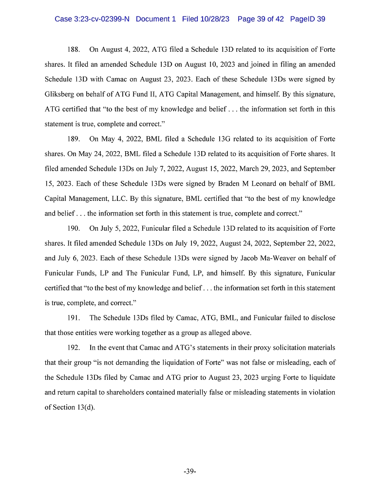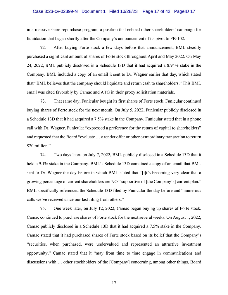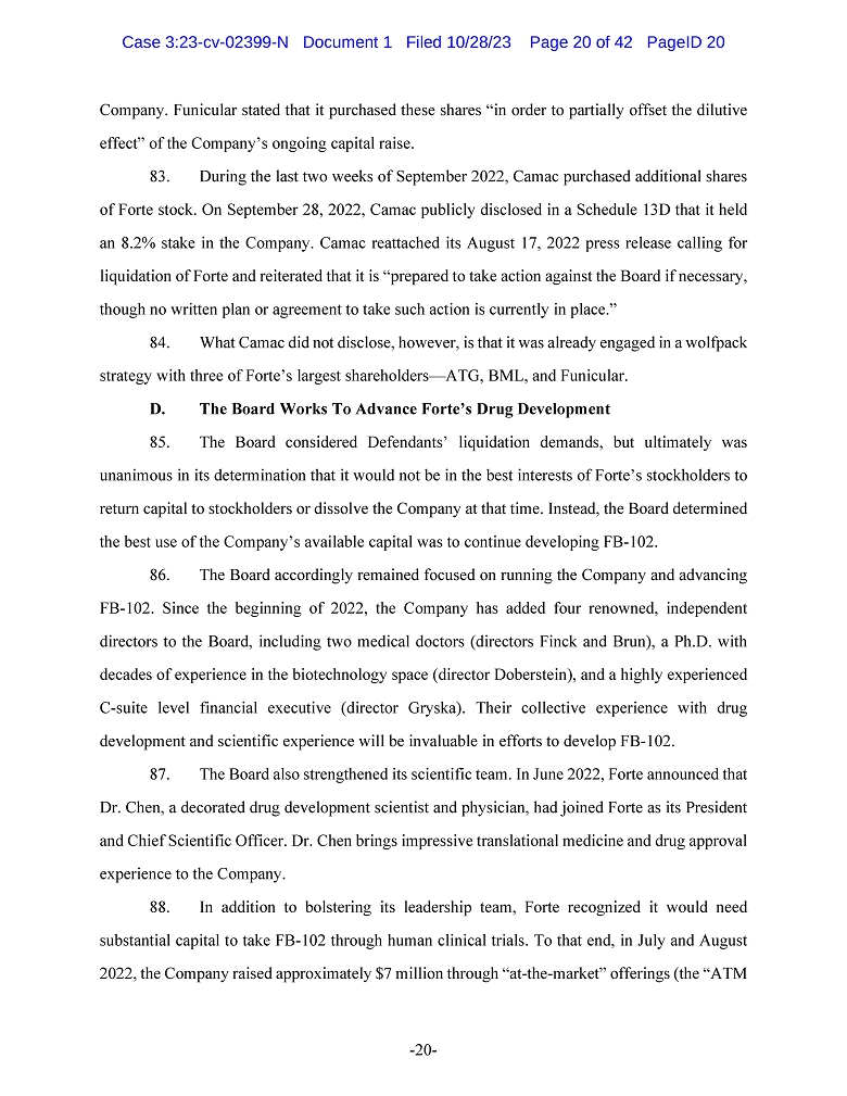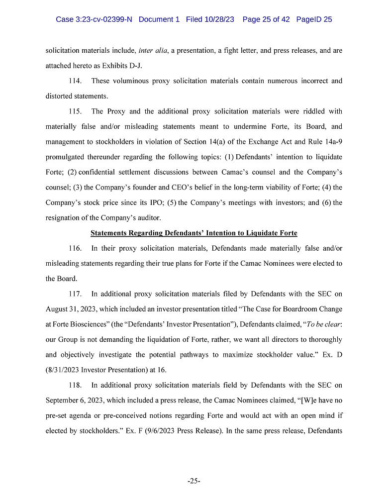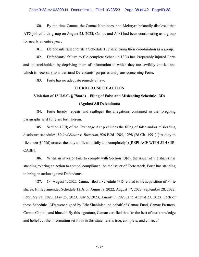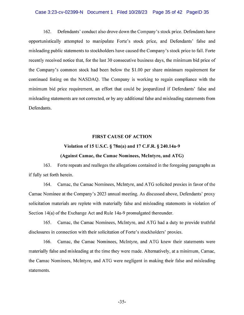 Also on August 10, 2023, Camac Fund moved for a preliminary injunction and expedited treatment in the Delaware Action. On August 17, 2023, the Court of Chancery granted expedited treatment and instructed the parties to schedule a preliminary injunction hearing following the Issuer’s 2023 annual meeting.