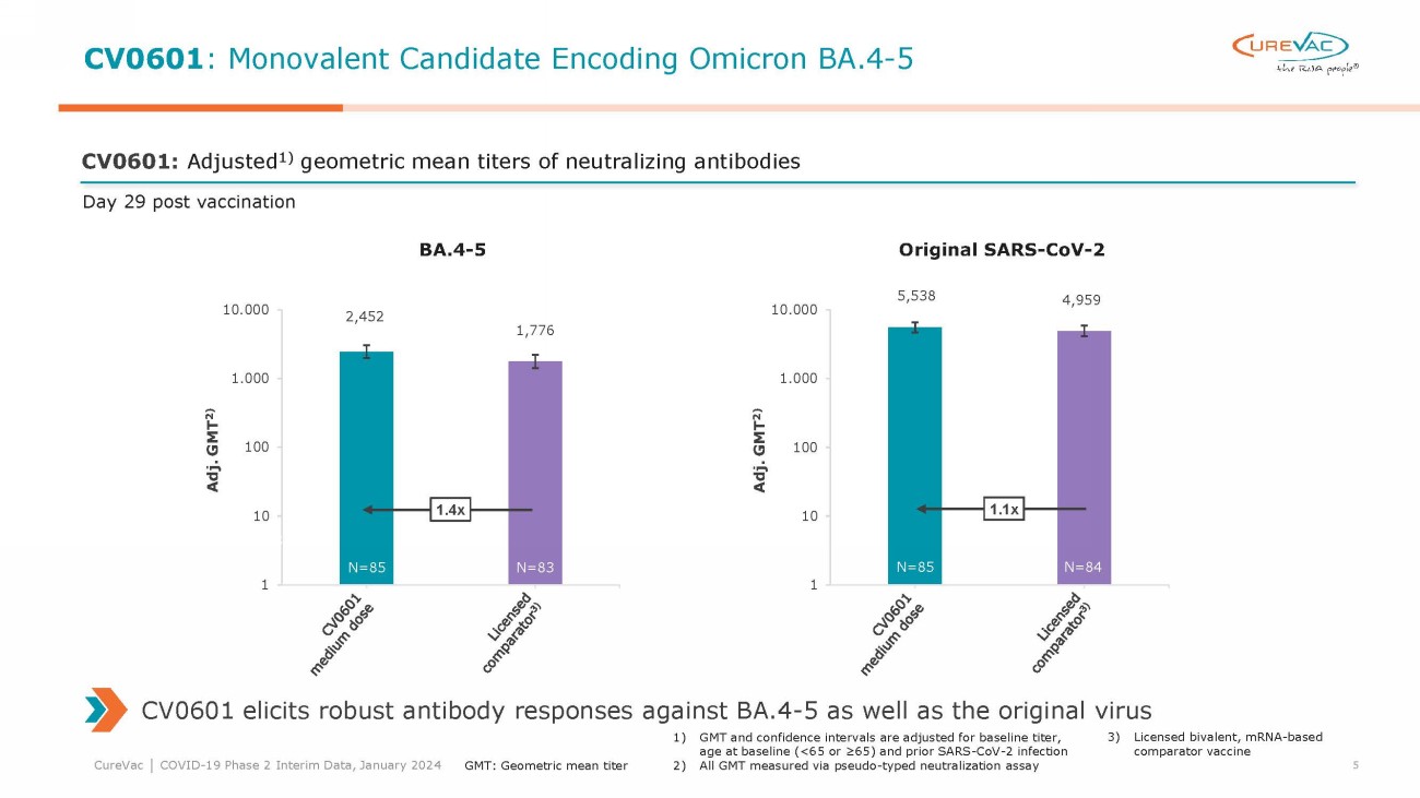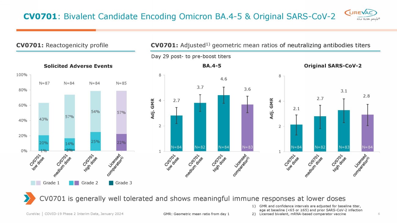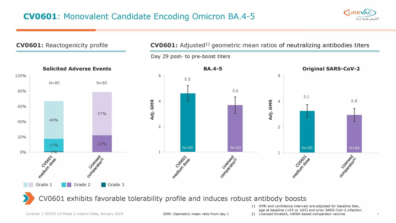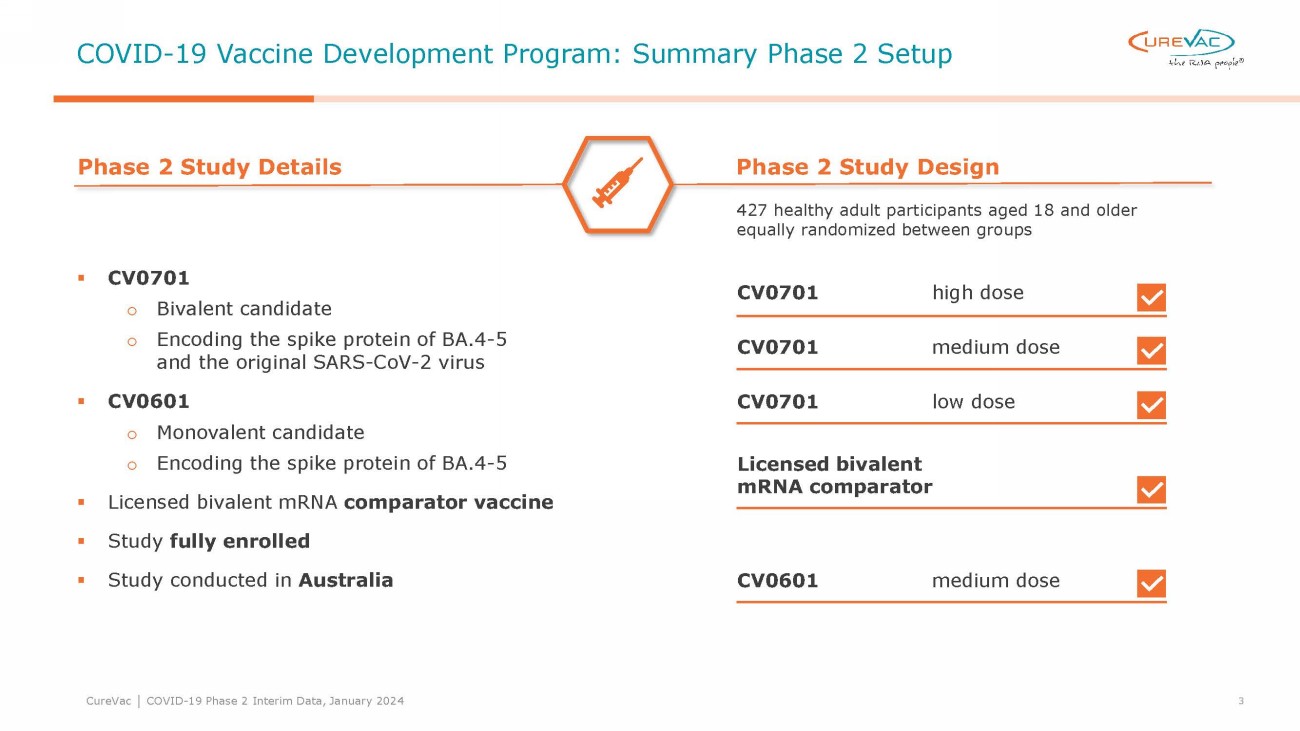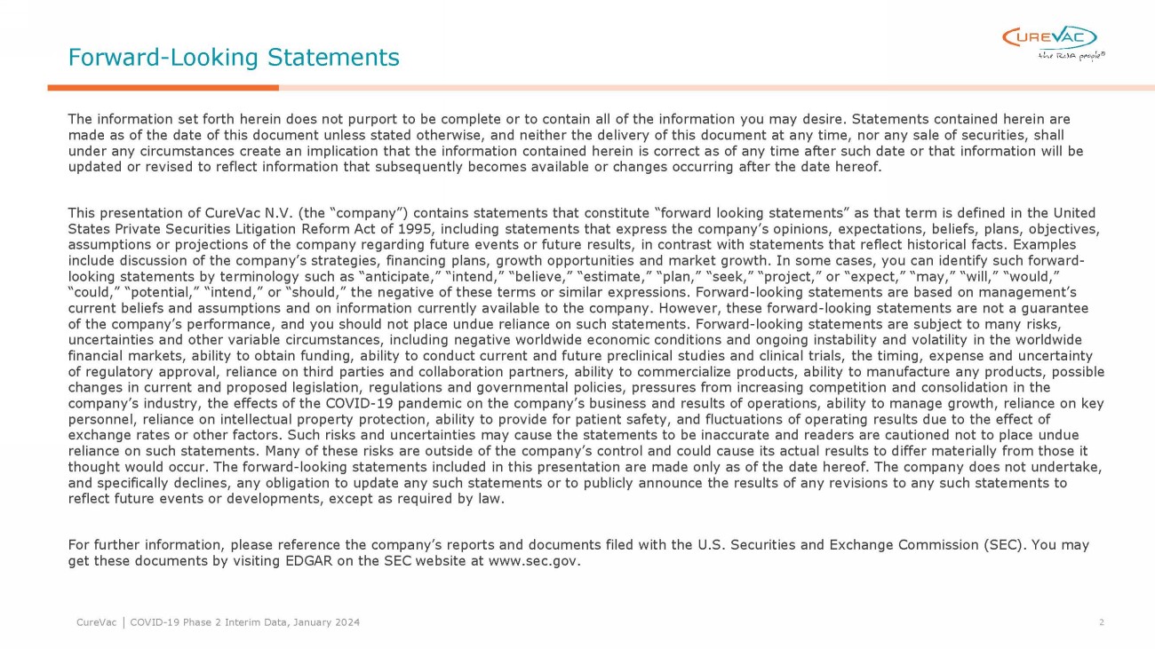 On January 5, 2024, CureVac N.V. (the “Company”) issued a press release announcing positive Phase 2 interim data from its COVID-19 vaccine development program in collaboration with GSK.