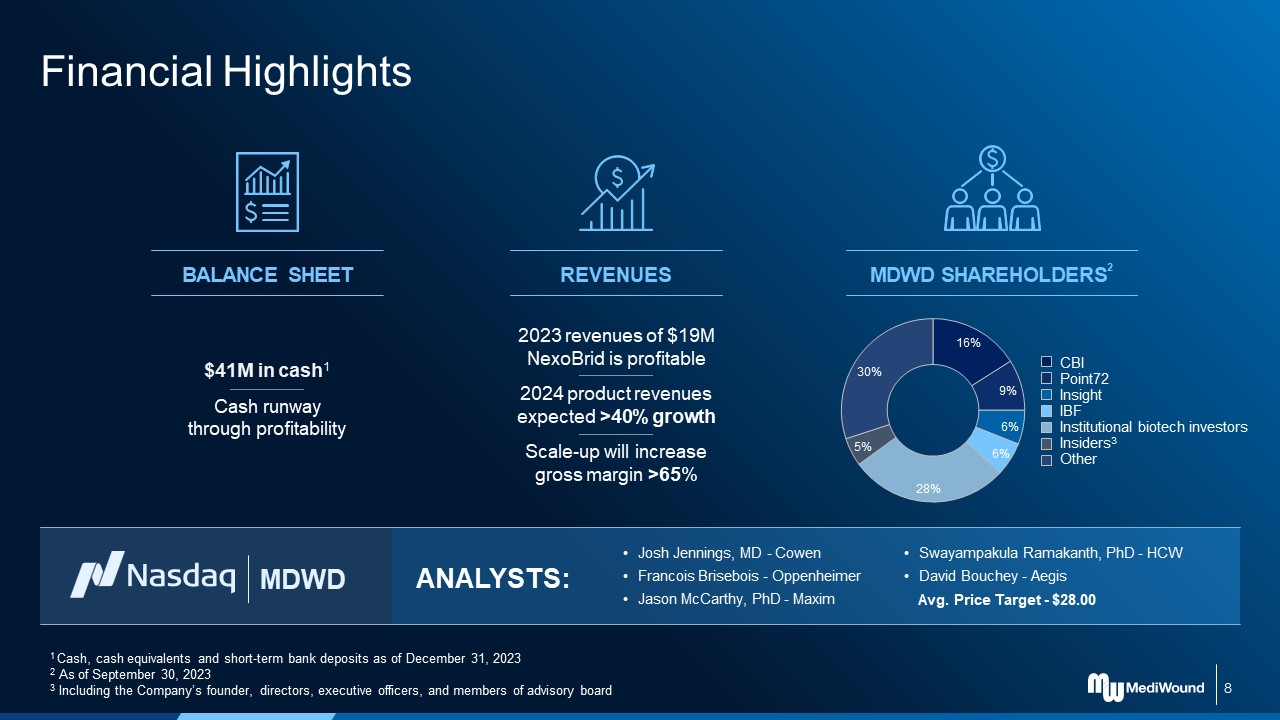 On January 8, 2024, MediWound Ltd. (the “Company”) made a presentation at the J.P. Morgan 42nd Annual Healthcare