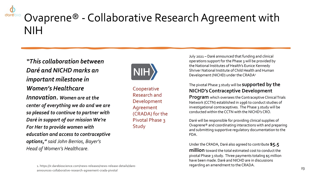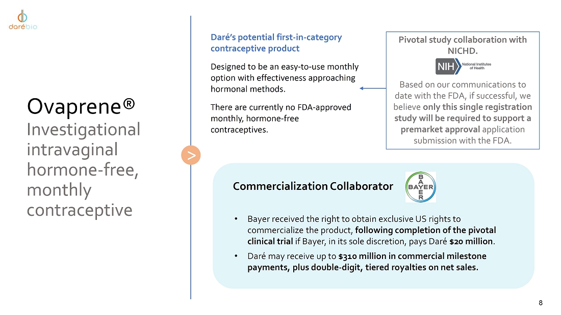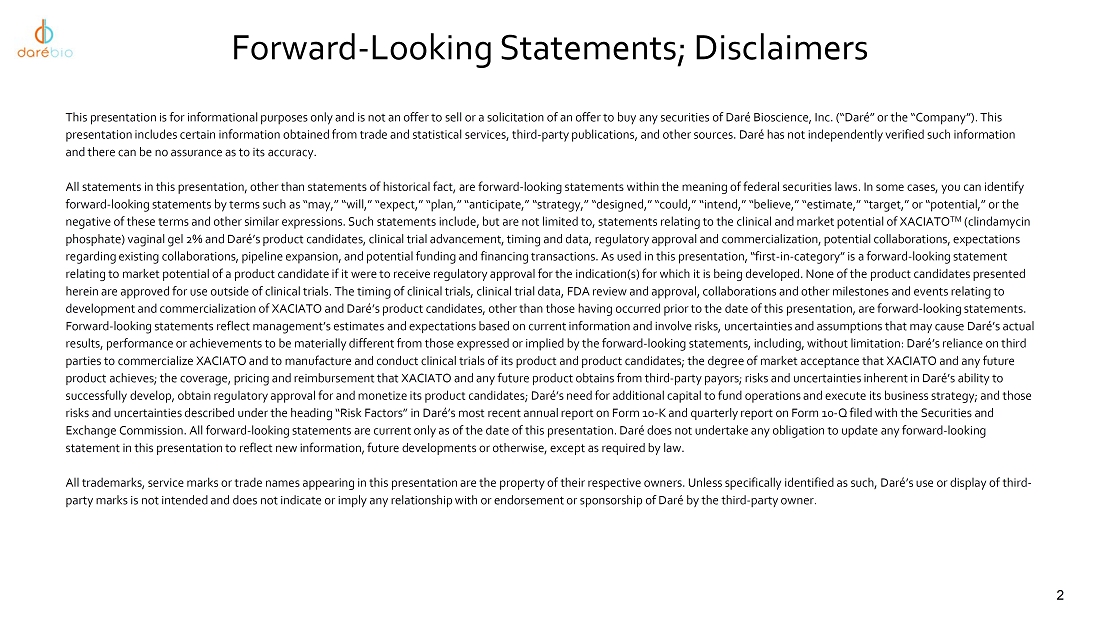 The information in Item 7.01 of this report, including Exhibit 99.1, shall not be deemed “filed” for purposes of Section 18 of the Securities Exchange Act of 1934, as amended, or otherwise subject to liability under that Section or Sections 11 and 12(a)(2) of the Securities Act of 1933, as amended. The information contained in this Item 7.01 and in Exhibit 99.1 shall not be incorporated by reference into any filing with the Securities and Exchange Commission made by Daré, whether made before or after the date hereof, regardless of any general incorporation language in such filing.