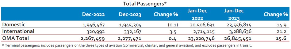 OMA reports a 0.4% increase in December 2023 passenger traffic |