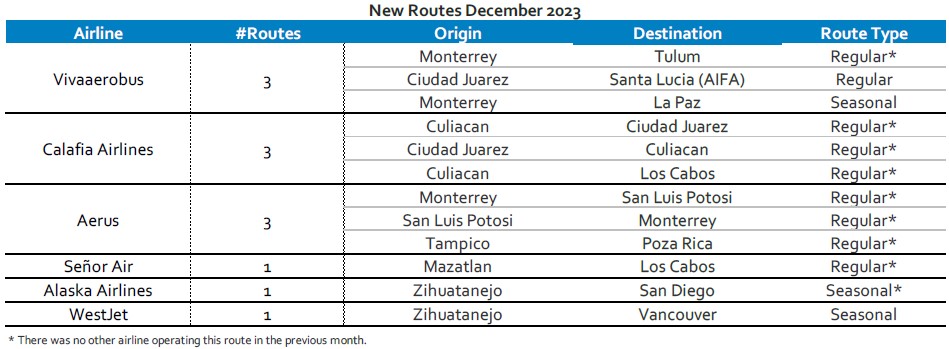 A total of 12 routes started operations during the month:
