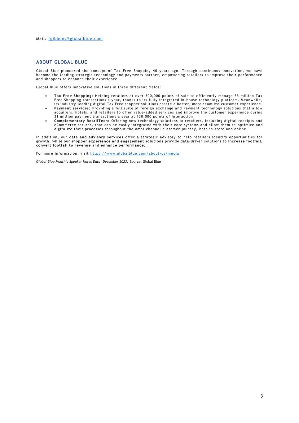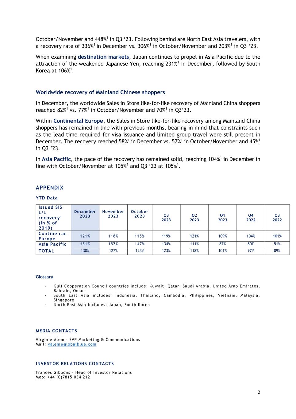 On January 11, 2024, Global Blue Group Holding AG (the "Company") issued a press release, attached as exhibit 99.1 to this Form 6-K, providing a business update on the Tax Free Shopping ("TFS") sustained recovery in Continental Europe, and the steady TFS recovery in Asia Pacific.