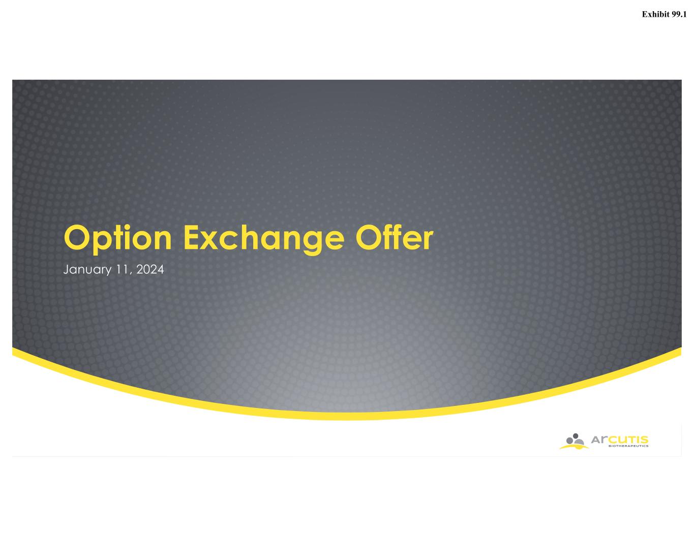 On January 11, 2024, Arcutis Biotherapeutics, Inc. (the “Company”) announced that certain eligible employees and consultants will be invited to participate in a voluntary, one-time opportunity to exchange certain outstanding eligible options to purchase shares of the Company’s common stock, par value $0.0001 per share (the “Common Stock”), for a lesser number of new restricted stock units (“RSUs”) pursuant to an option exchange program (the “Option Exchange”). The Company is pursuing this initiative as part of its continued efforts to retain top tier talent, and in recognition that its employees and consultants value their equity holdings in the Company. An objective of the Company’s equity incentive programs has been, and continues to be, to align the interests of employees and consultants with those of the Company’s stockholders, and the Company believes that the Option Exchange is an important component its efforts to achieve that goal. The Company views equity as a meaningful component of its compensation philosophy and strives to remain competitive in its compensation offerings to employees.