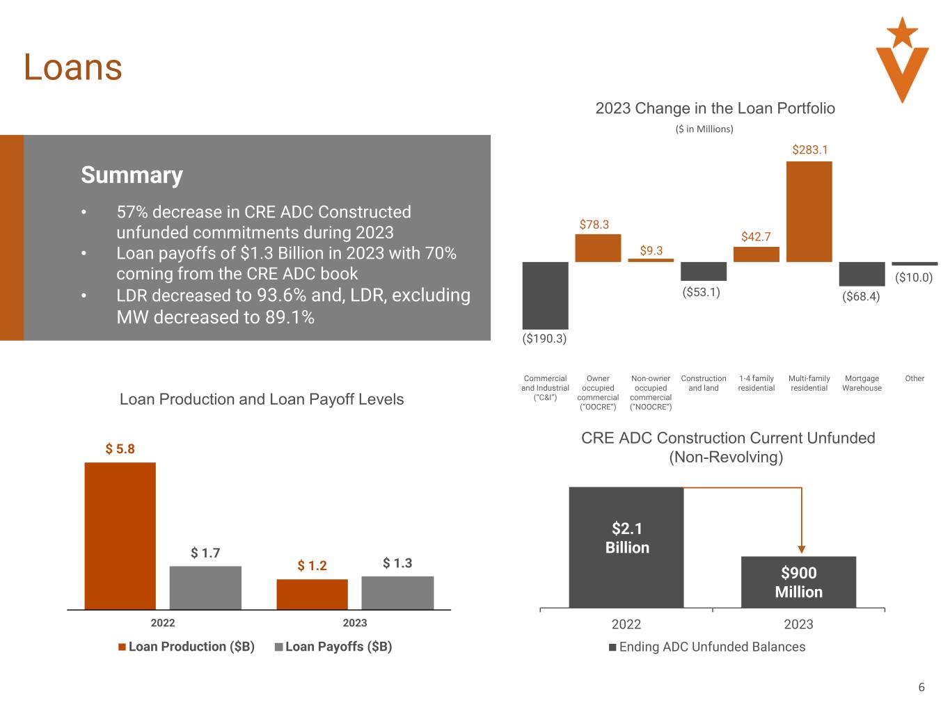 •Total unfunded Acquisition, Development, and Construction (“ADC”) decreased to $900.0 million, or approximately 57%, as of December 31, 2023 compared to $2.1 billion as of December 31, 2022, and risk-weighted assets decreased $612.2 million, or 5.1%, during 2023 compared to 2022;