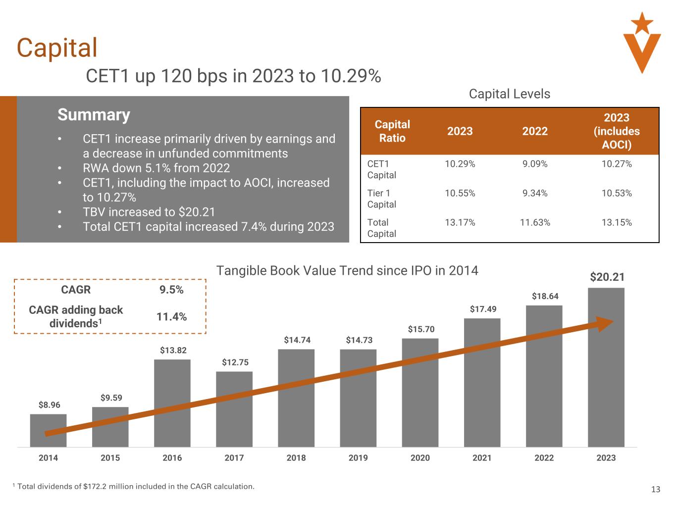 •Tangible book value per common share increased 8.4%, or $1.57, during 2023 compared to 2022, and including dividends increased 12.7%, or $2.37;
