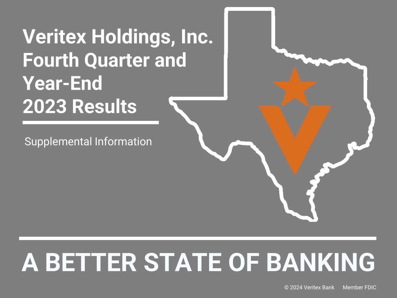 A BETTER STATE OF BANKING Veritex Holdings, Inc. Fourth Quarter and Year-End 2023 Results Earnings Release January 23, 2024 NASDAQ: VBTX © 2024 Veritex Bank Member FDIC