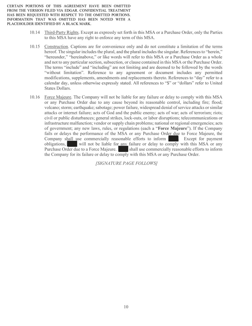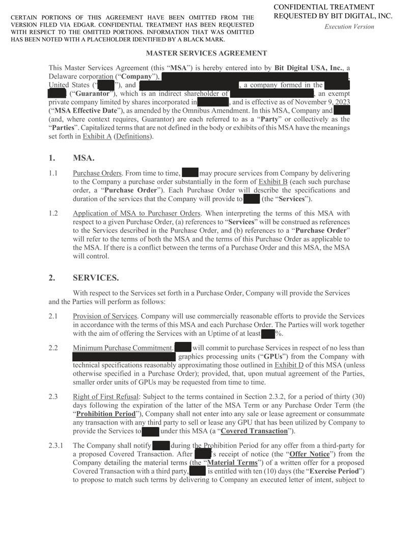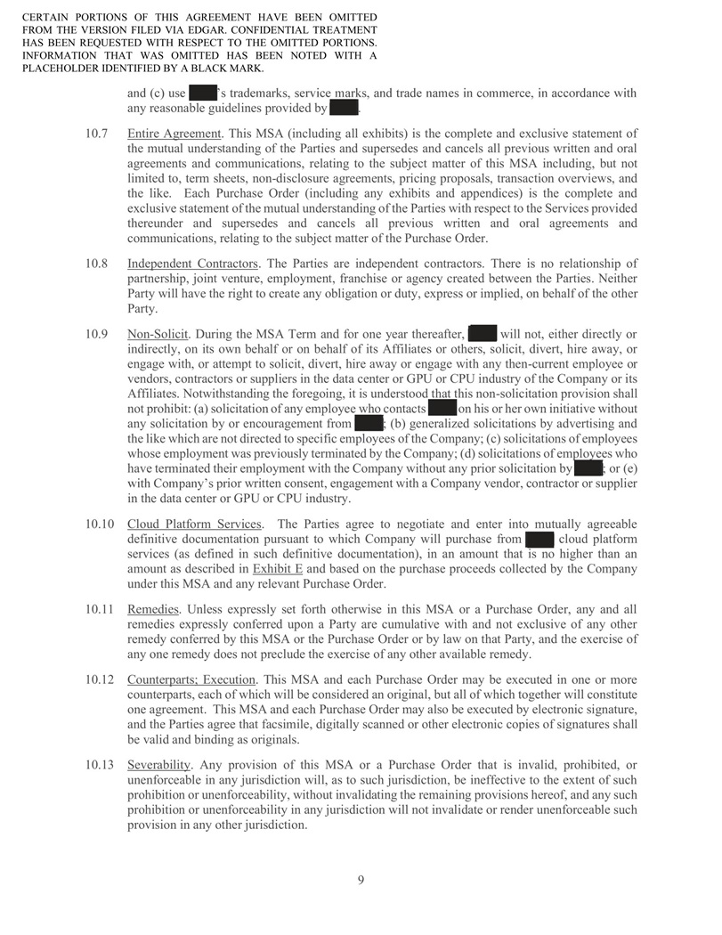 Pursuant to the Novation Agreement, the Company has agreed to increase the scope of the initial MSA contract with the Initial Customer. Under the terms of the MSA, as amended and novated by the Novation Agreement, the Company will supply the Initial Customer with computational power from an additional 512 graphic processing units (“GPUs”) (in addition to the initial GPUs, for a total of 2,048 GPUs) for a period of three years.