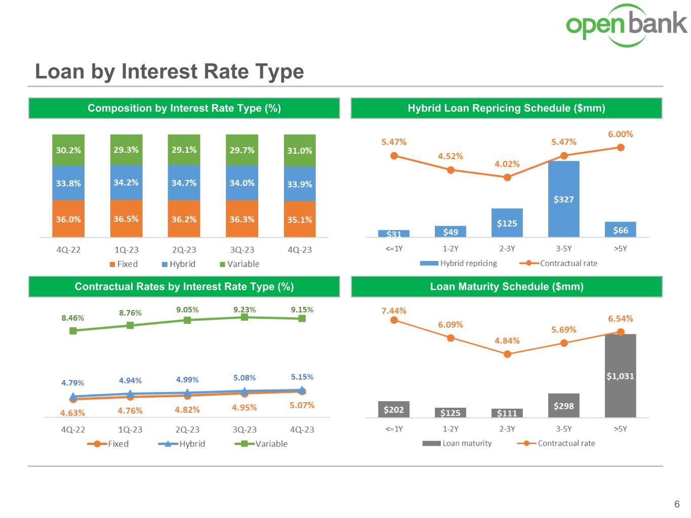 Loan by Interest Rate Type 6 Hybrid Loan Repricing Schedule ($mm)Composition by Interest Rate Type (%) Contractual Rates by Interest Rate Type (%) Loan Maturity Schedule ($mm)