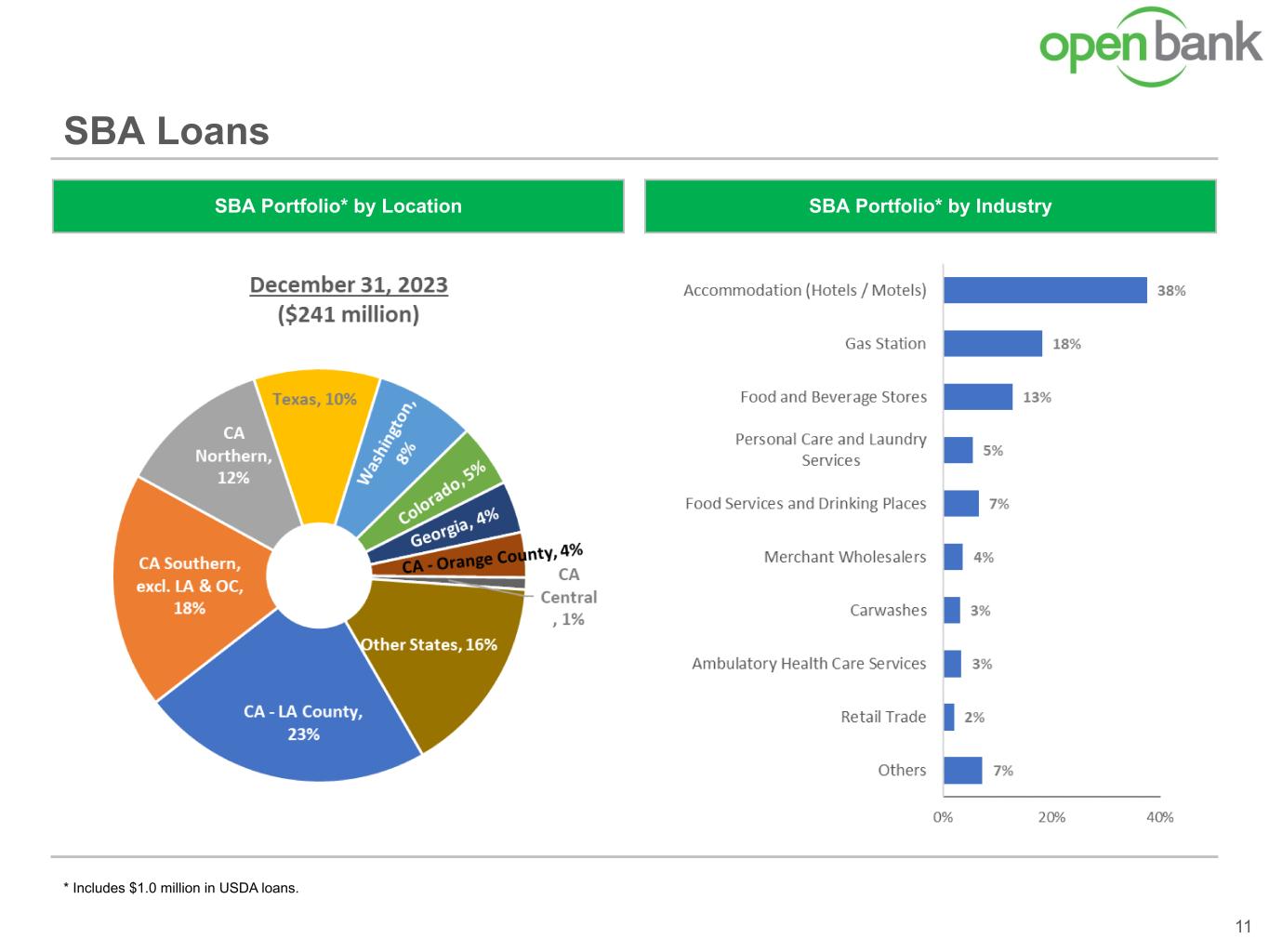 * Includes $1.0 million in USDA loans. SBA Loans 11 SBA Portfolio* by IndustrySBA Portfolio* by Location