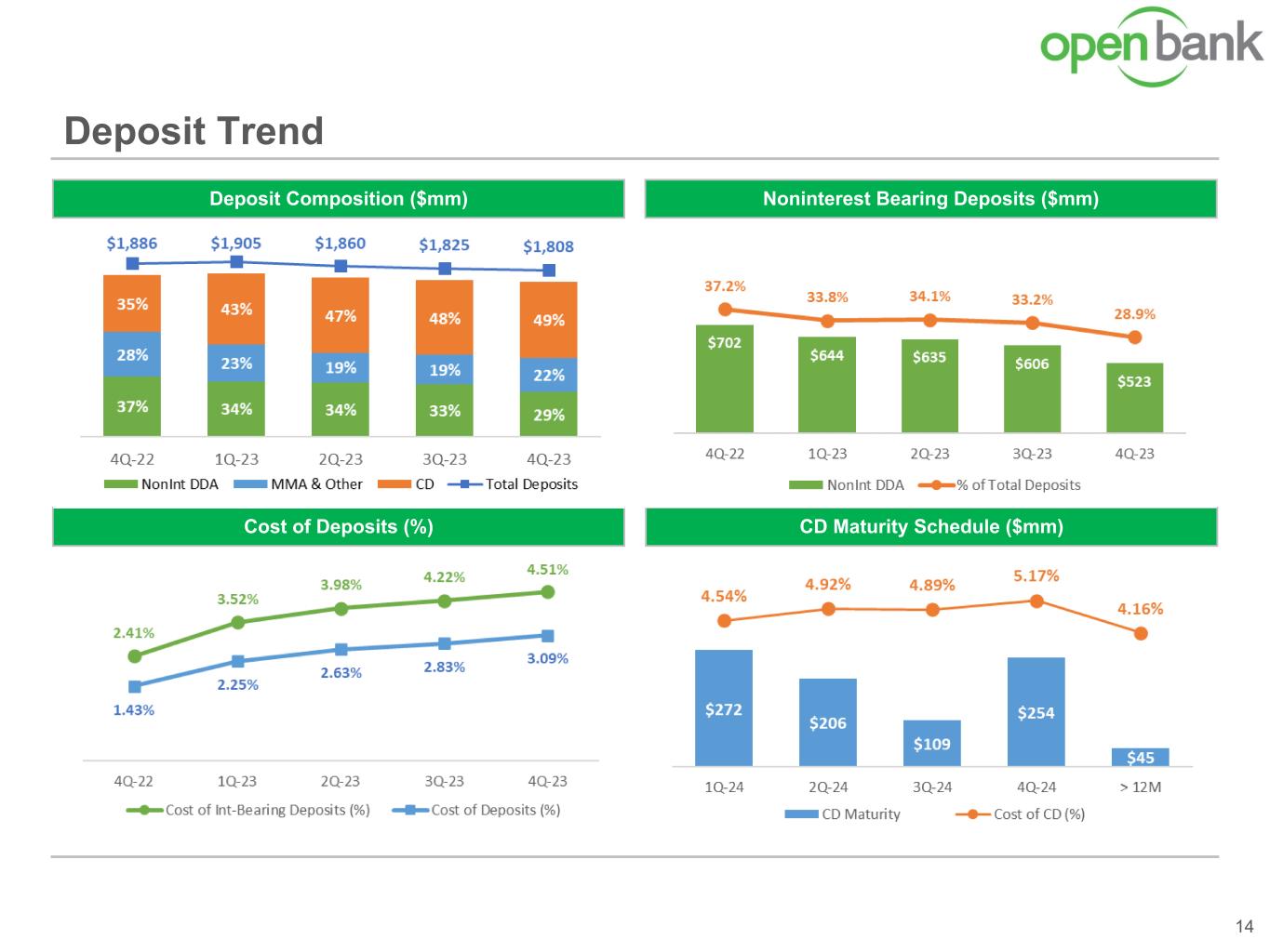 Deposit Trend 14 Noninterest Bearing Deposits ($mm)Deposit Composition ($mm) Cost of Deposits (%) CD Maturity Schedule ($mm)