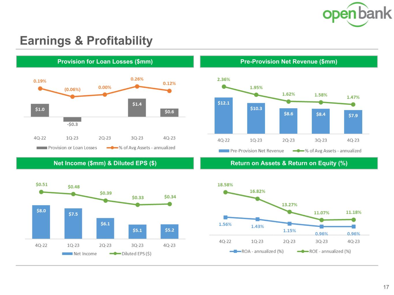 Earnings & Profitability 16 Efficiency Ratio (%)Noninterest Expense ($mm) Noninterest Expense Components ($mm) Efficiency Ratio Components (%) * Ratios for Efficiency Ratio Components are percentages of average assets and are annualized.