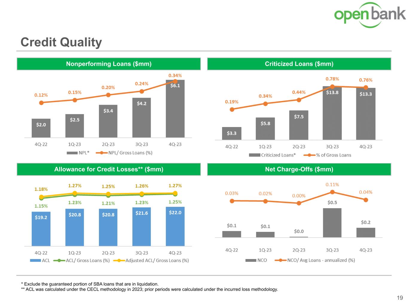 ◦Net charge-offs(1) to average gross loans(2) of 0.04%, compared to 0.11%