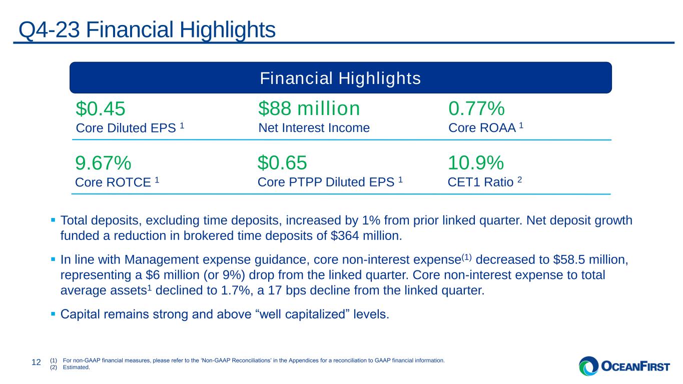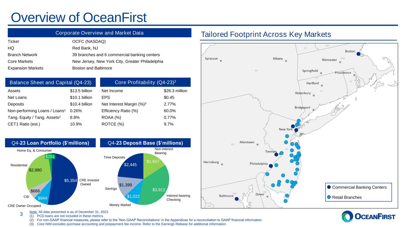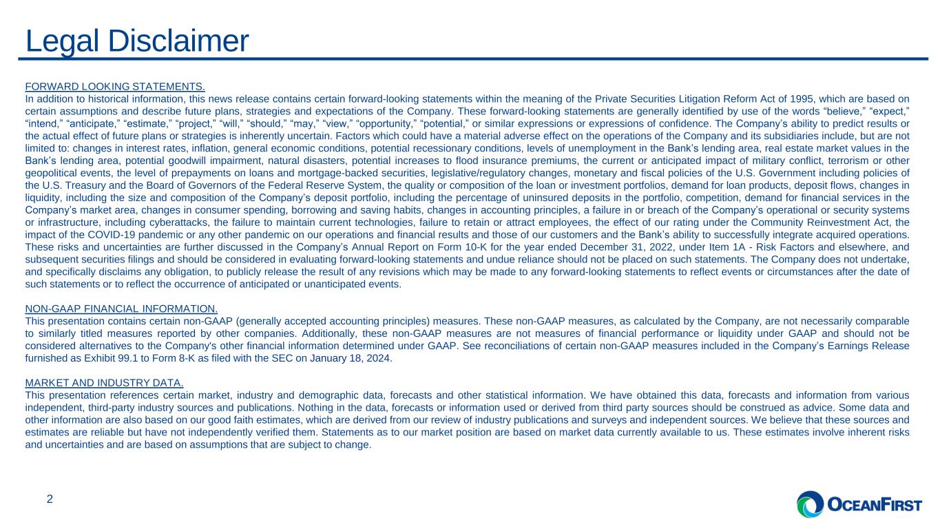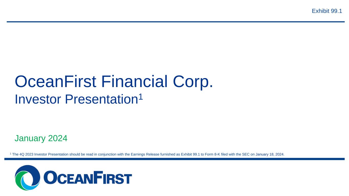 . . . 1 The 4Q 2023 Investor Presentation should be read in conjunction with the Earnings Release furnished as Exhibit 99.1 to Form 8-K filed with the SEC on January 18, 2024. Exhibit 99.1 OceanFirst Financial Corp. Investor Presentation1 January 2024