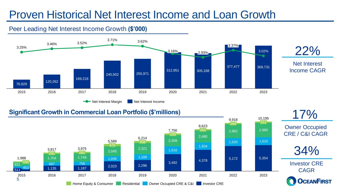 . . .Our Shareholder Value Proposition Strong balance sheet – Strategically planned balance sheet provides opportunity to grow loan portfolio at attractive returns while realizing reduced costs of funding for an improved profitability profile. Continued expense management and discipline – Identified and executed on opportunities for efficiencies in our existing technology and staffing infrastructure while maintaining productivity and improving the customer experience. Well positioned capital – Strategic capital utilization has allowed for significant stockholder capital returns historically while building flexibility for capital deployment within constraints as opportunities arise. 4