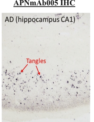 • | Our lead therapeutic product candidate (APNmAb005). APNmAb005 is a humanized anti-tau antibody and our most clinically advanced therapeutic product candidate. APNmAb005 is designed to preferentially bind pathological tau aggregates, not normal tau, that accumulate at the neuronal synapses with disease. In addition, based on preclinical studies we conducted, APNmAb005 recognizes a three-dimensional conformation-dependent epitope that is only present in tau abnormal aggregates but not in normal tau protein, thus suggesting this product candidate may achieve a high level of selectivity for pathological forms of tau. |