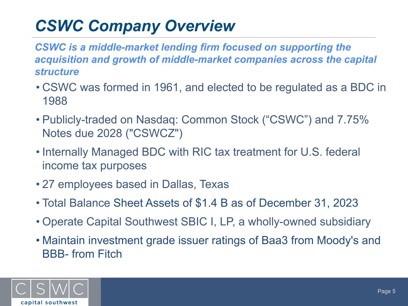 Q3 2024 Earnings Presentation 8333 Douglas Avenue, Suite 1100 | Dallas, Texas 75225 | 214.238.5700 | capitalsouthwest.com January 30, 2024 Capital Southwest Corporation