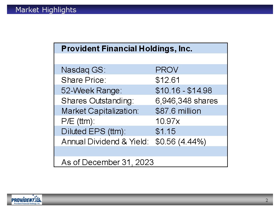 PROVIDENT FINANCIAL HOLDINGS, INC.