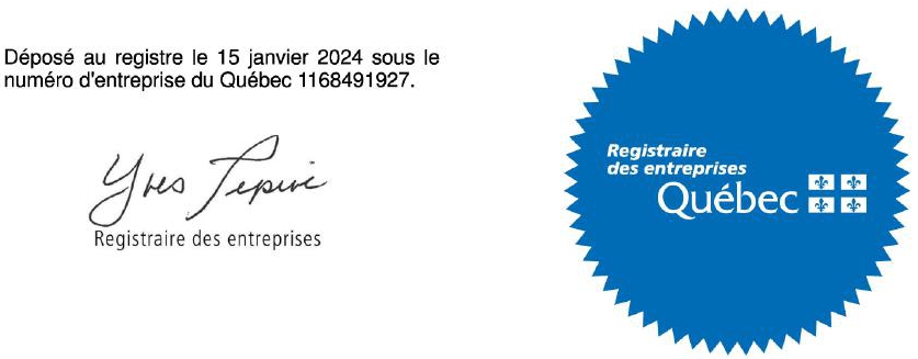 Pursuant to the requirements of the Securities Act of 1933, the Registrant certifies that it has reasonable grounds to believe it meets all of the requirements for filing on Form F-1 and has duly caused this Registration Statement to be signed on its behalf by the undersigned, thereunto duly authorized in the City of Boisbriand, Province of Québec, Canada on January 30, 2024.