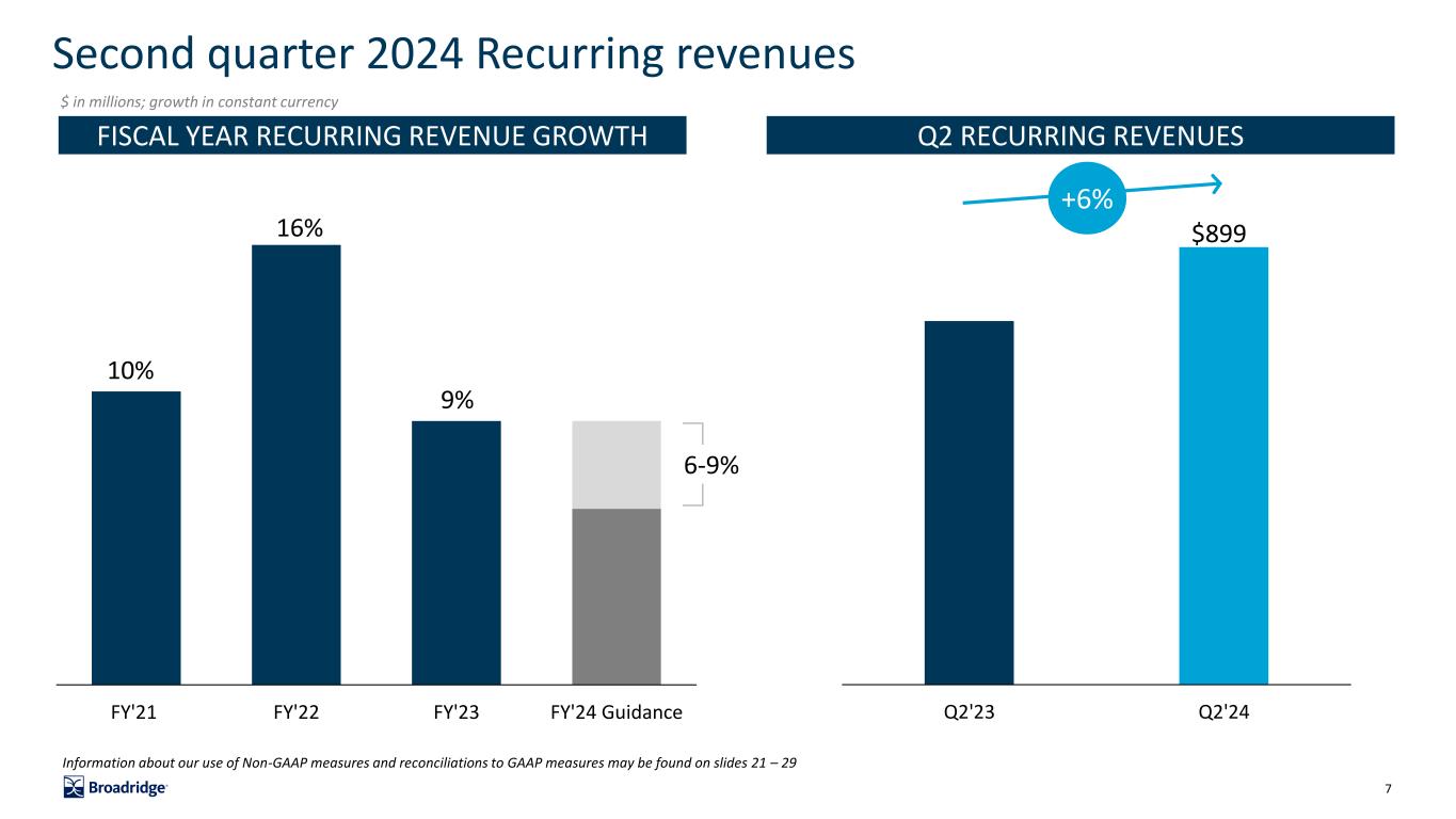 | Recurring revenues | | $899 | $840 | 7 | % | $1,770 | $1,646 | 8 | % |