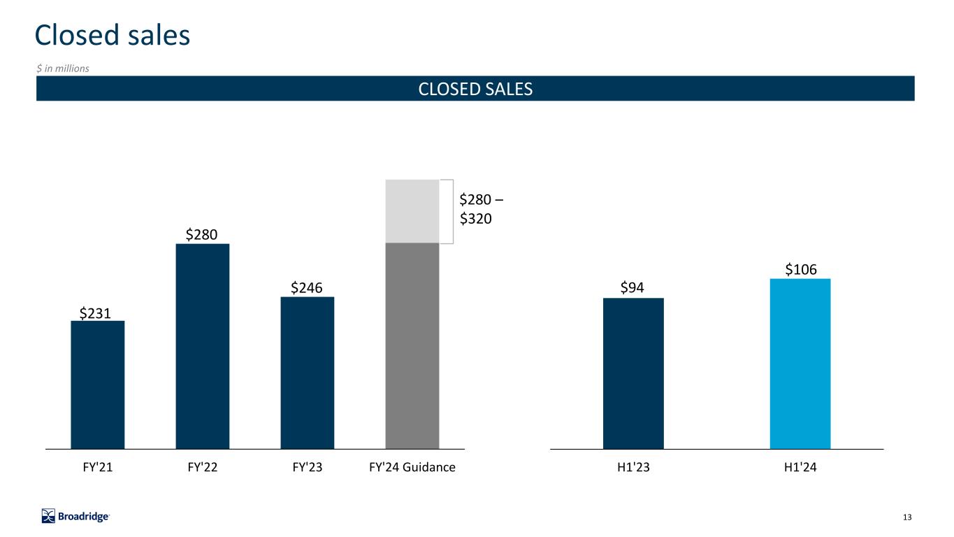| Closed sales | | $58 | $65 | (11 | %) | $106 | $94 | 12 | % |