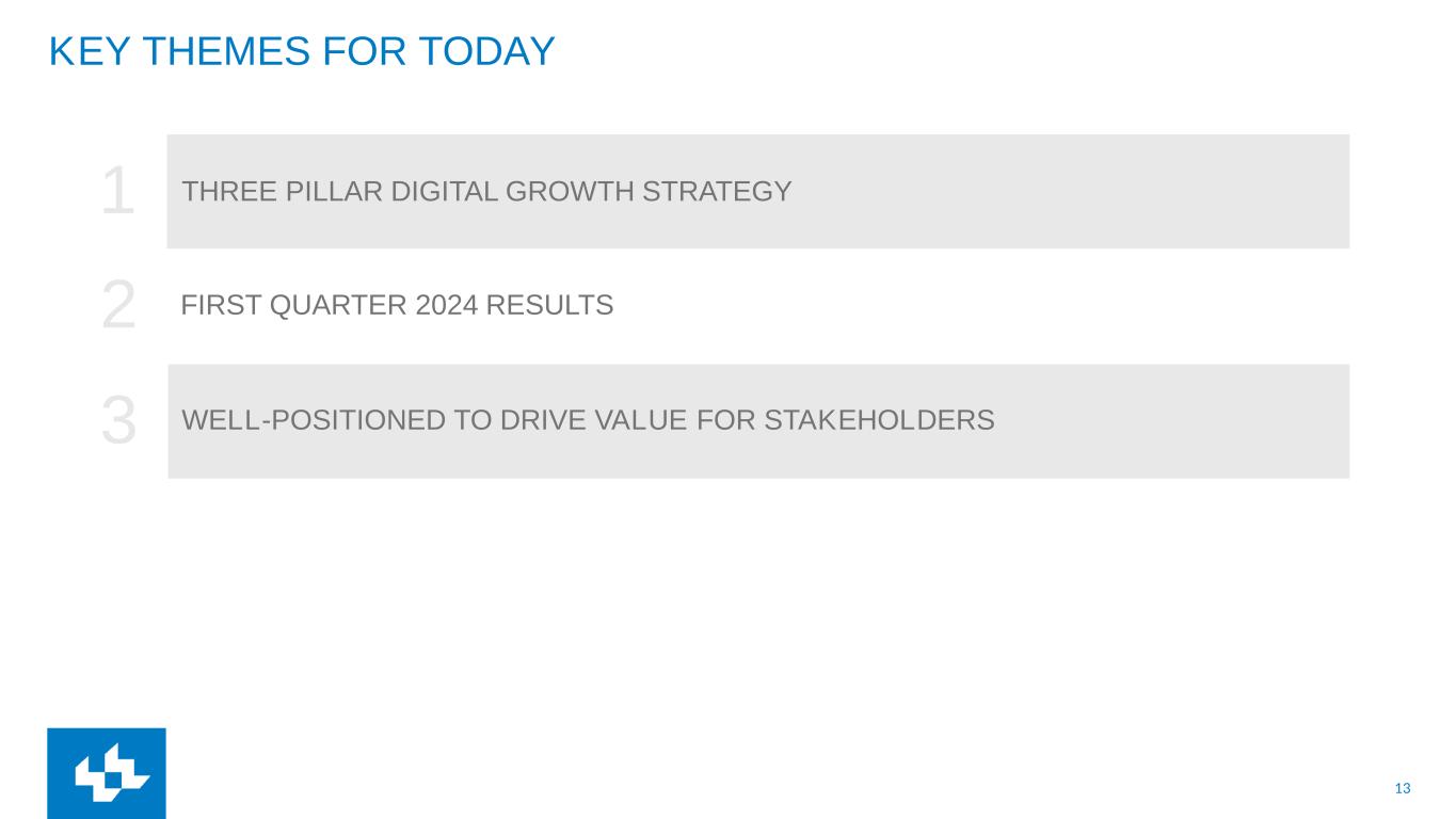 3 KEY THEMES FOR TODAY THREE PILLAR DIGITAL GROWTH STRATEGY1 2 FIRST QUARTER 2024 RESULTS 3 WELL-POSITIONED TO DRIVE VALUE FOR STAKEHOLDERS