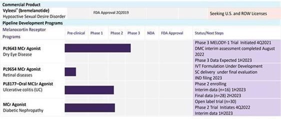 We are a biopharmaceutical company developing first-in-class medicines based on molecules that modulate the activity of the melanocortin receptor (“MCr”) system. Our product candidates are targeted, receptor-specific therapeutics for the treatment of diseases with significant unmet medical need and commercial potential. Our strategy is to develop products and then form marketing collaborations with industry leaders to maximize product commercial potential.