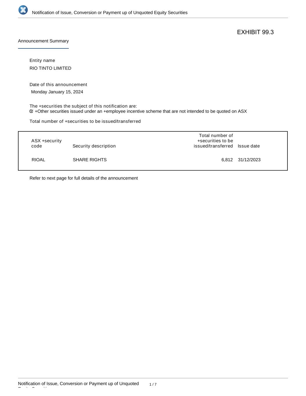 | Date | 1 February 2024 | Date | 1 February 2024 |