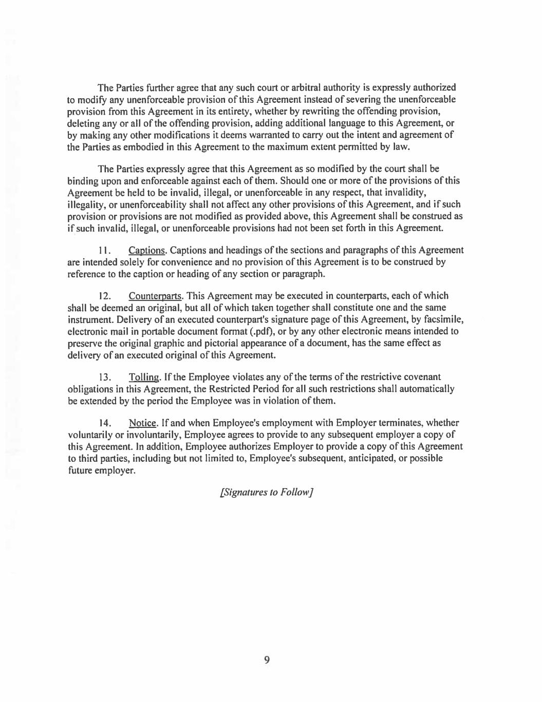Non-Compete and Other Agreements.