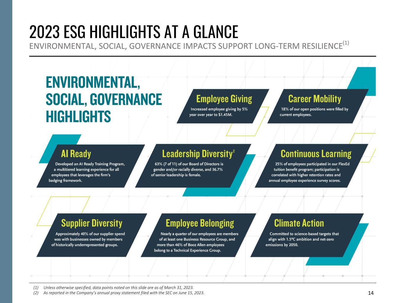 13 FY24 PIPELINE AND DEMAND DYNAMICS (1) Qualified pipeline for FY24 and backlog as of December 31, 2023. (2) Includes awards that were under protest as of December 31, 2023. (3) Rates disclosed in the Company’s Annual Report on Form 10-K for the fiscal year ended March 31, 2023. Consideration Conversion Diverse portfolio with limited concentration riskü Strong demand environment aligned to innovation agendaü ~66% win rate on new work ~88% on recompetes(3)ü Backlog of $34B+ ~15% of which is funded(1)ü Ample demand and strong growth prospects support momentum across the business. QUALIFIED PIPELINE OF $14B+(1)(2) PROPOSALS IN PROCESS OF $2B+ SUBMITTED PROPOSALS OF $8.2B+(2)