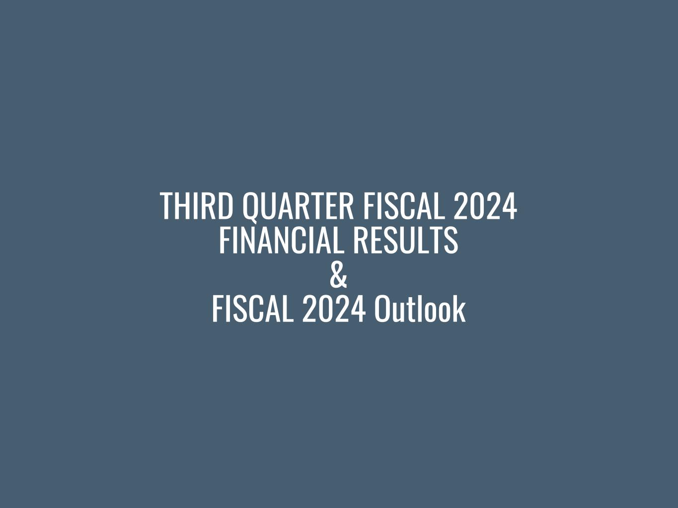 THIRD QUARTER FISCAL 2024 FINANCIAL RESULTS & FISCAL 2024 Outlook