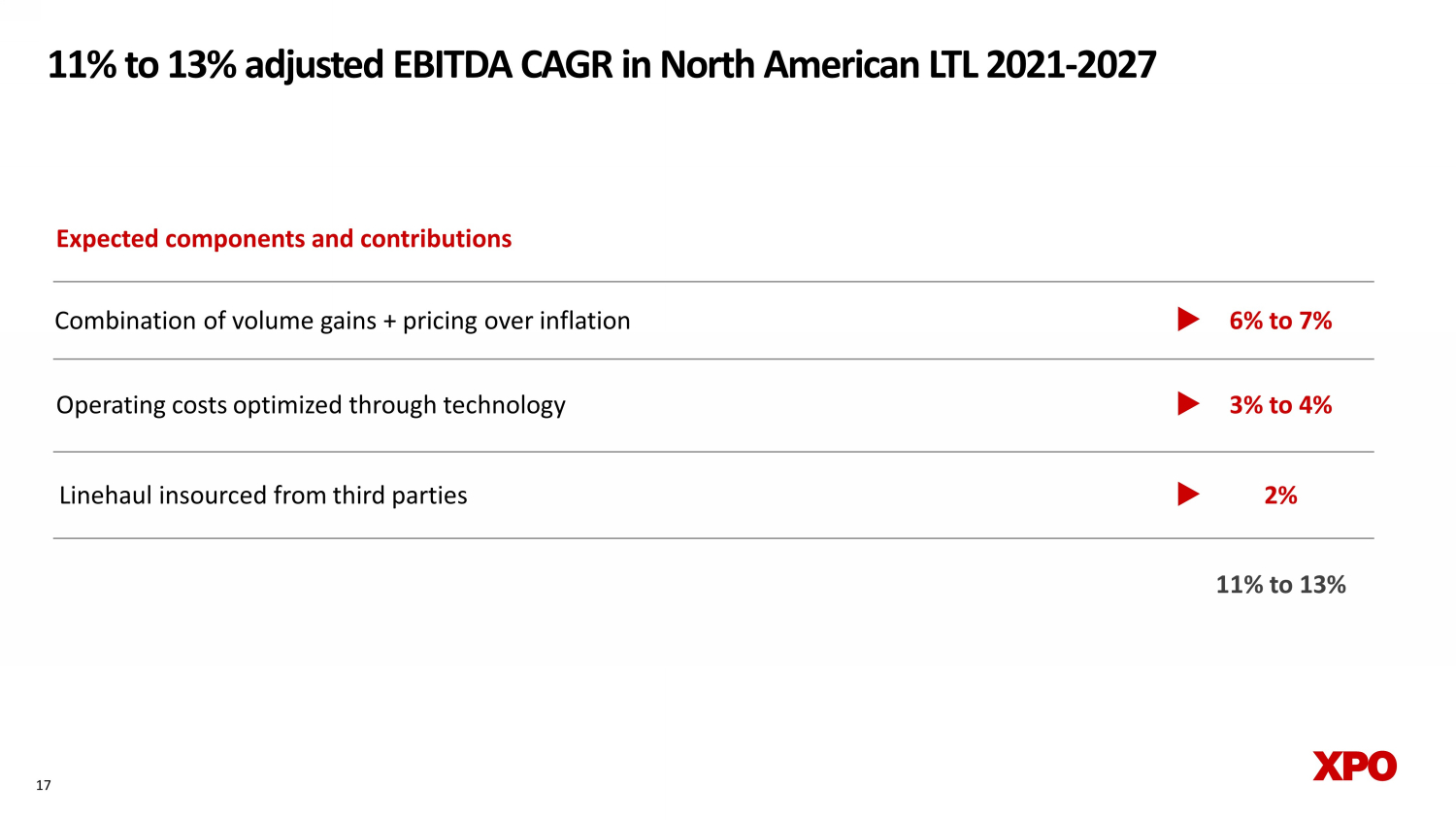 17 11% to 13% adjusted EBITDA CAGR in North American LTL 2021 - 2027 Combination of volume gains + pricing over inflation 6% to 7% 3% to 4% 2% Operating costs optimized through technology Linehaul insourced from third parties Expected components and contributions 11% to 13%