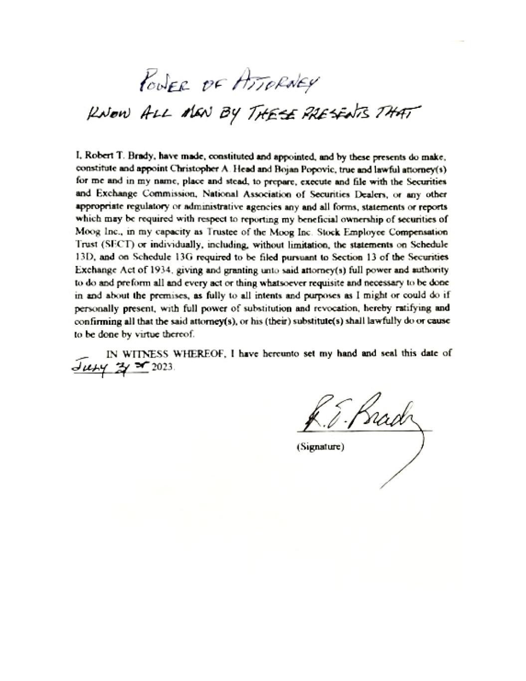 Robert T. Brady, individually and as trustee of the Moog Inc. Stock Employee Compensation Trust, as amended