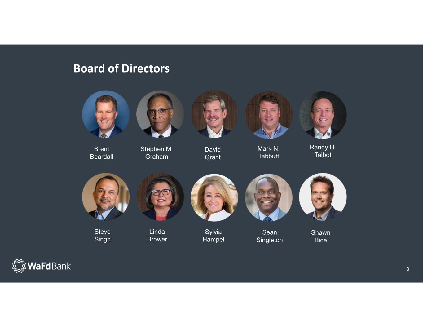 Executive Management Committee 2 Kelli Holz Executive Vice President Chief Financial Officer Brent Beardall President and Chief Executive Officer Ryan Mauer Executive Vice President Chief Credit Officer Cathy Cooper Executive Vice President Chief Consumer Banker Kim Robison Executive Vice President Chief Operating Officer James Endrizzi Executive Vice President Chief Commercial Banker