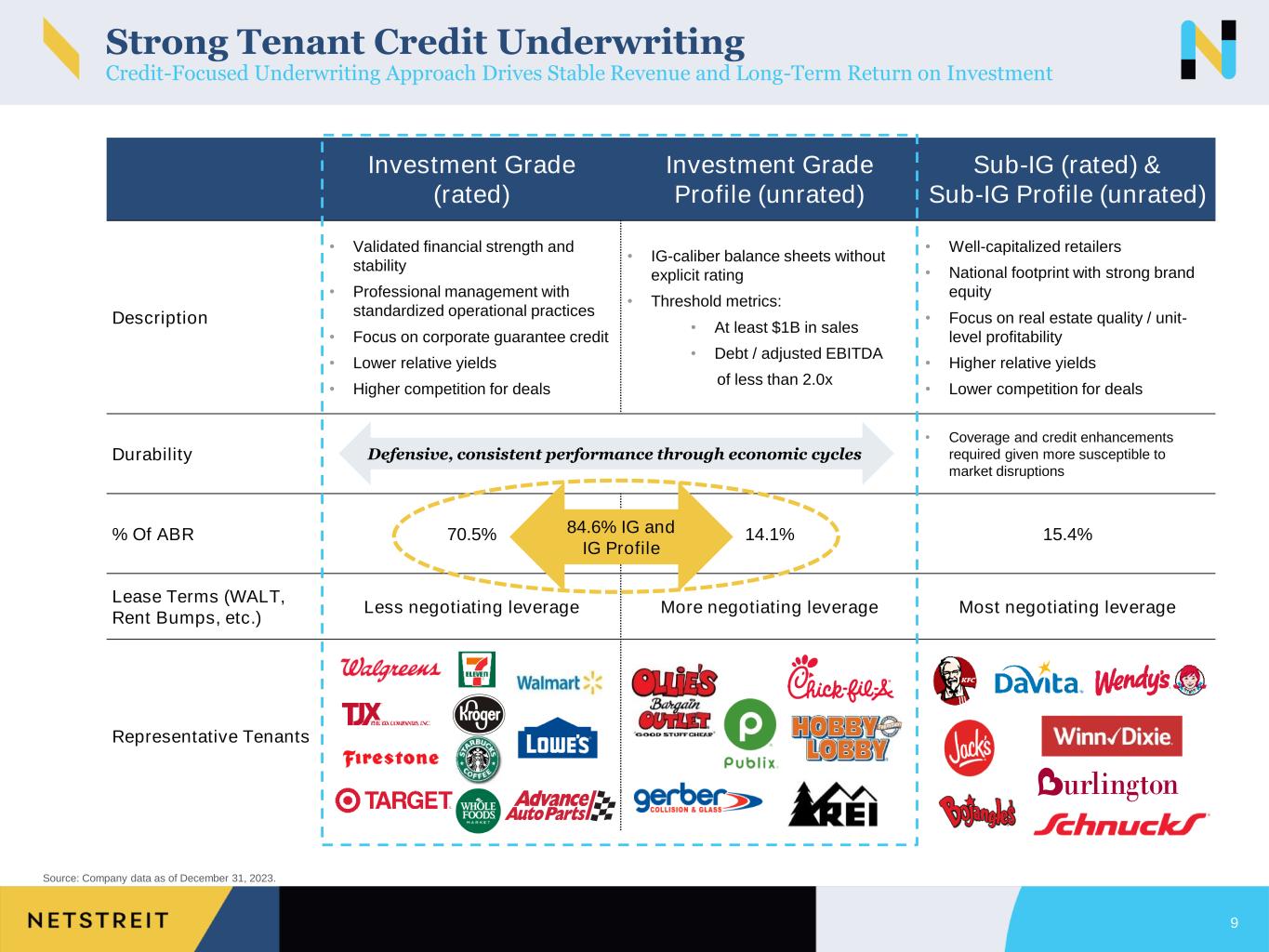 | % of ABR derived from Investment Grade Profile Tenants | | | 4.4 | % | | | | 11.8 | % |