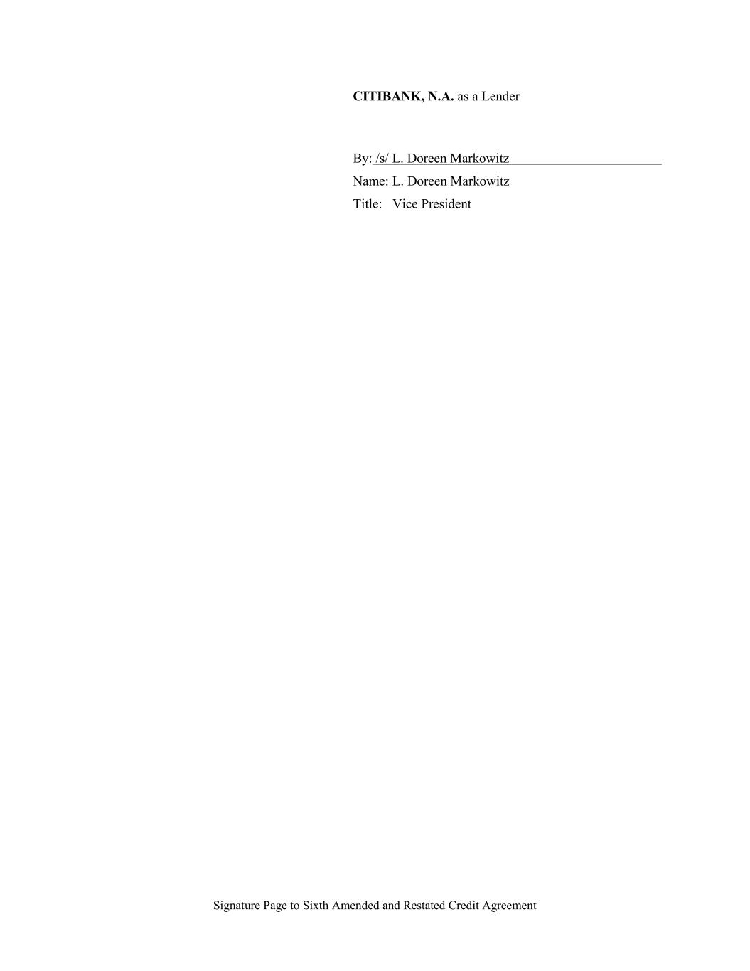 Signature Page to Amended and Restated Credit Agreement CITIBANK, N.A., as a Lender By: /s/ L. Doreen Markowitz Name: L. Doreen Markowitz Title: Vice President