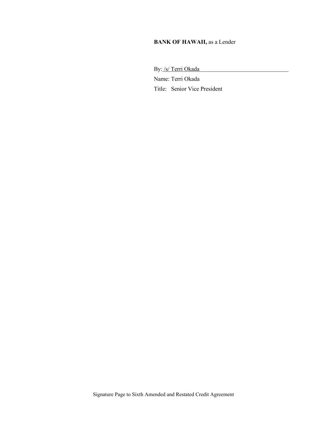 Signature Page to Amended and Restated Credit Agreement U.S. BANK NATIONAL ASSOCIATION, as a Lender By: /s/ Kenneth S. Wong Name: Kenneth S. Wong Title: Senior Vice President
