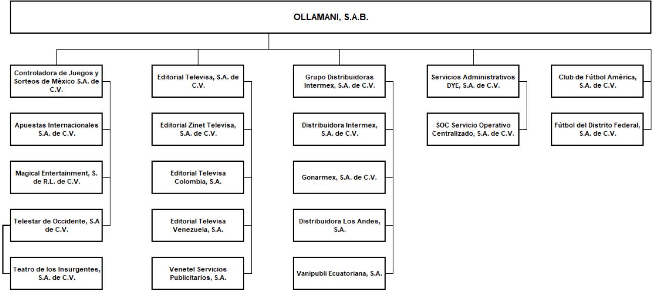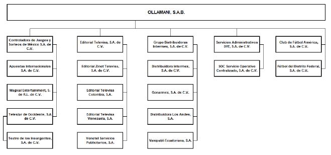 | Ollamani’s main line of business is that of a holding company; however, its subsidiaries are primarily engaged in the operation and management of a professional sports team (Club América), a stadium (Estadio Azteca), a gaming business (PlayCity), and the publication and distribution of magazines. | |