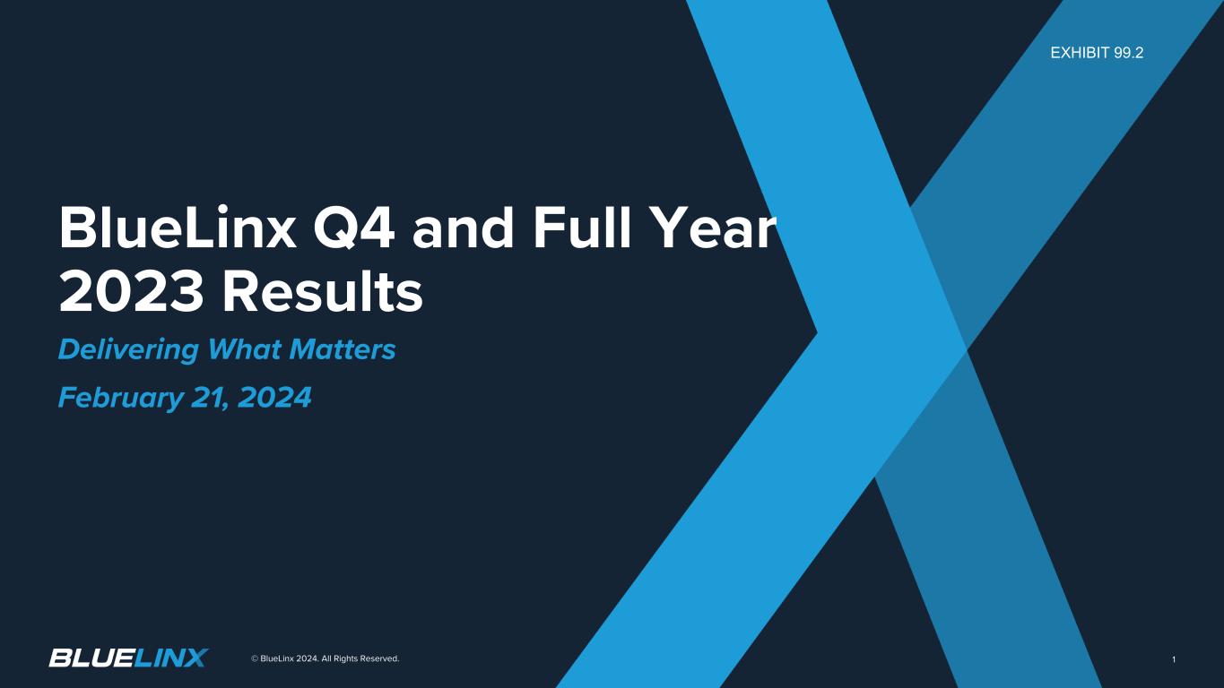 BlueLinx Q4 and Full Year 2023 Results Delivering What Matters February 21, 2024 © BlueLinx 2024. All Rights Reserved. 1 EXHIBIT 99.2