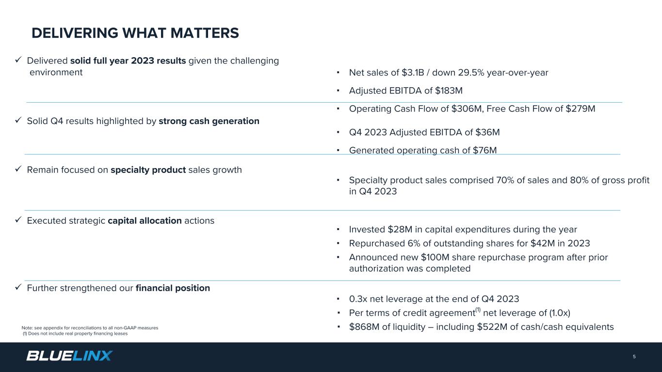 4 BlueLinx: Delivering What Matters BLUELINX STRATEGIC PRIORITIES