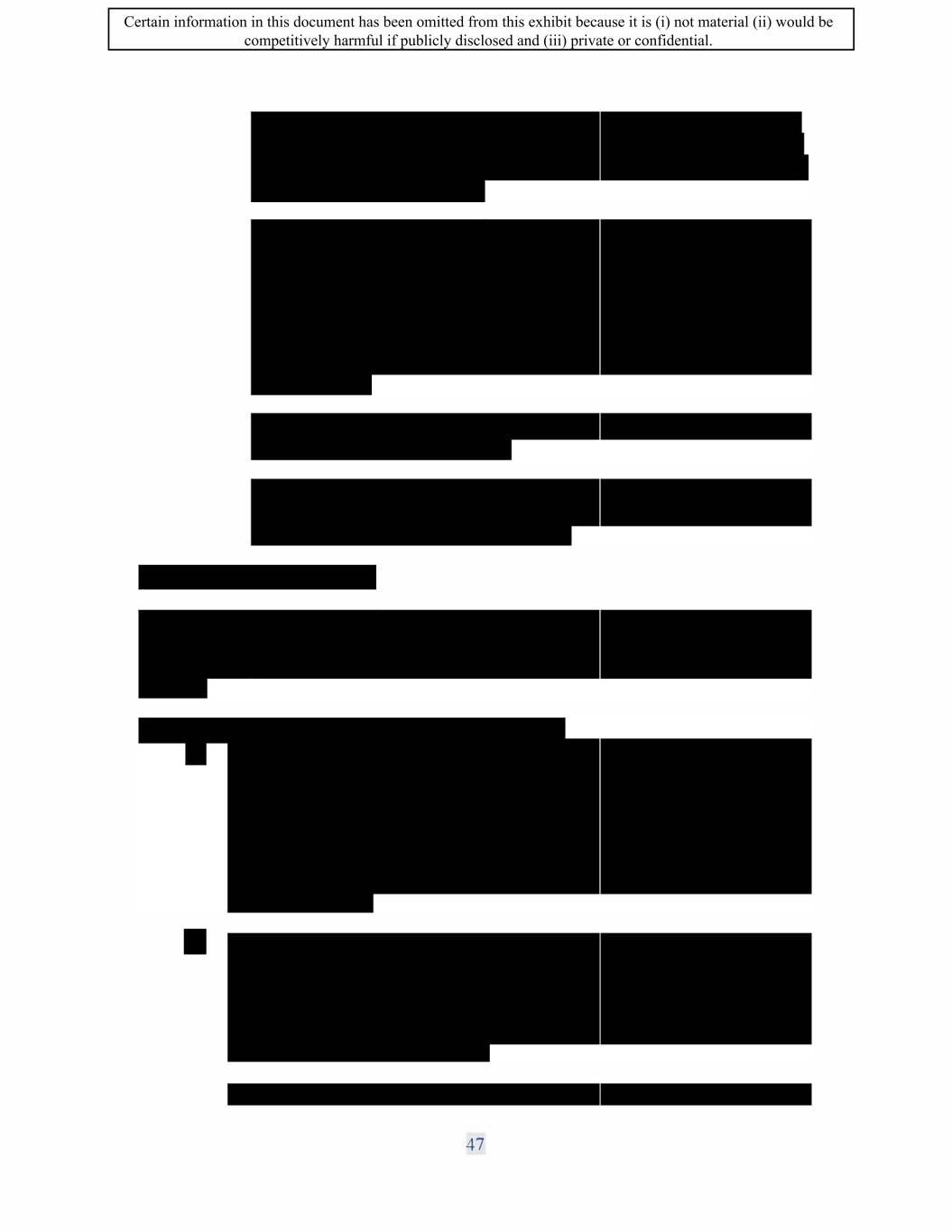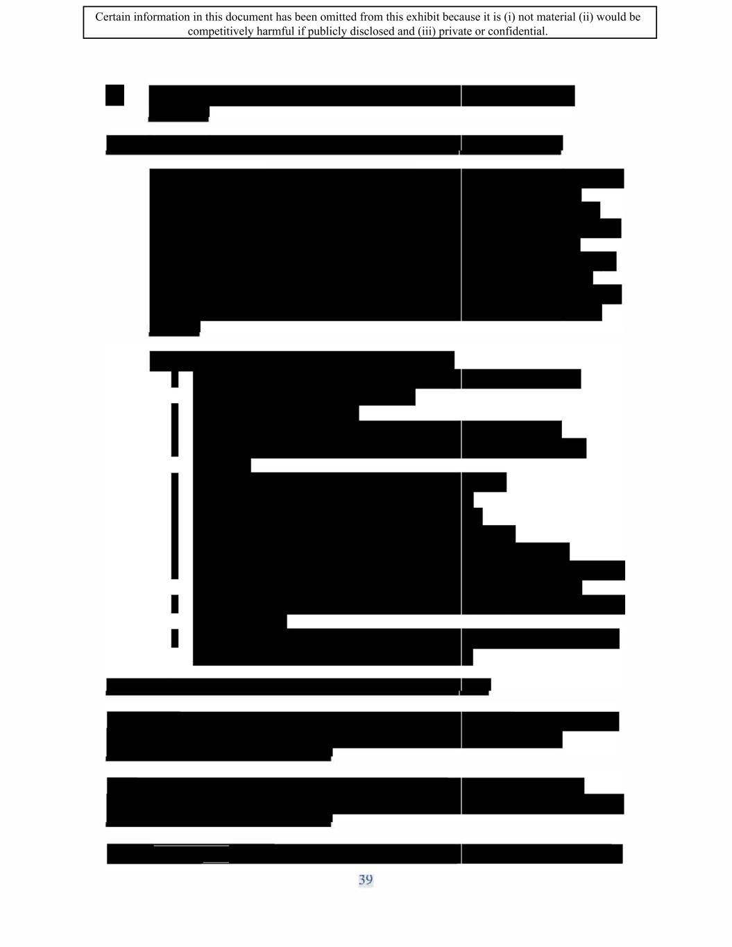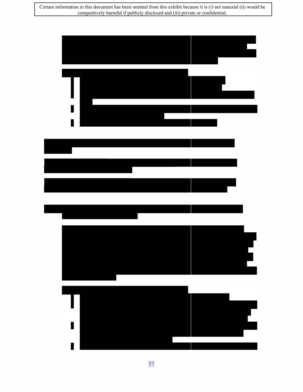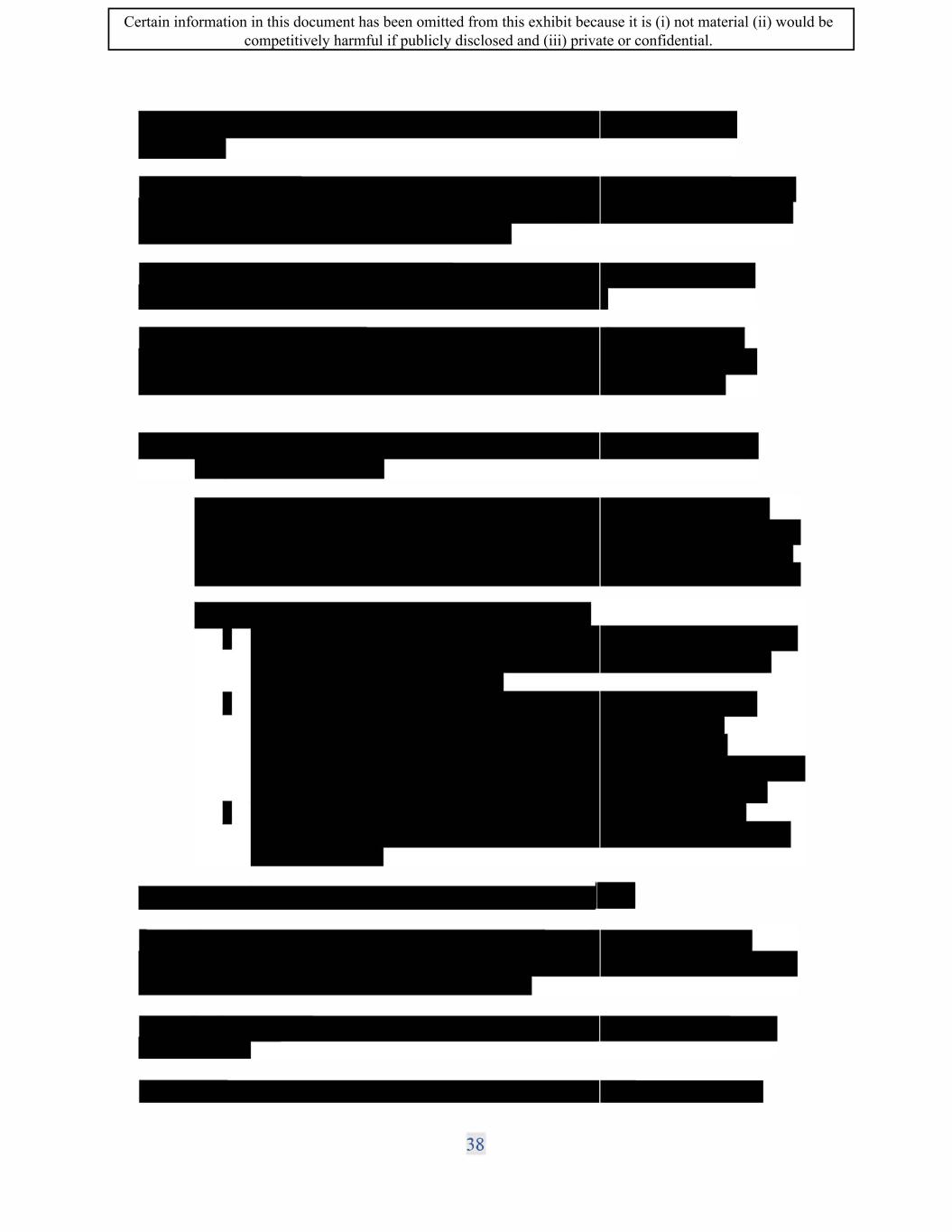 : Certain information in this document has been omitted from this exhibit because it is (i) not material (ii) would be competitively harmful if publicly disclosed and (iii) private or confidential.