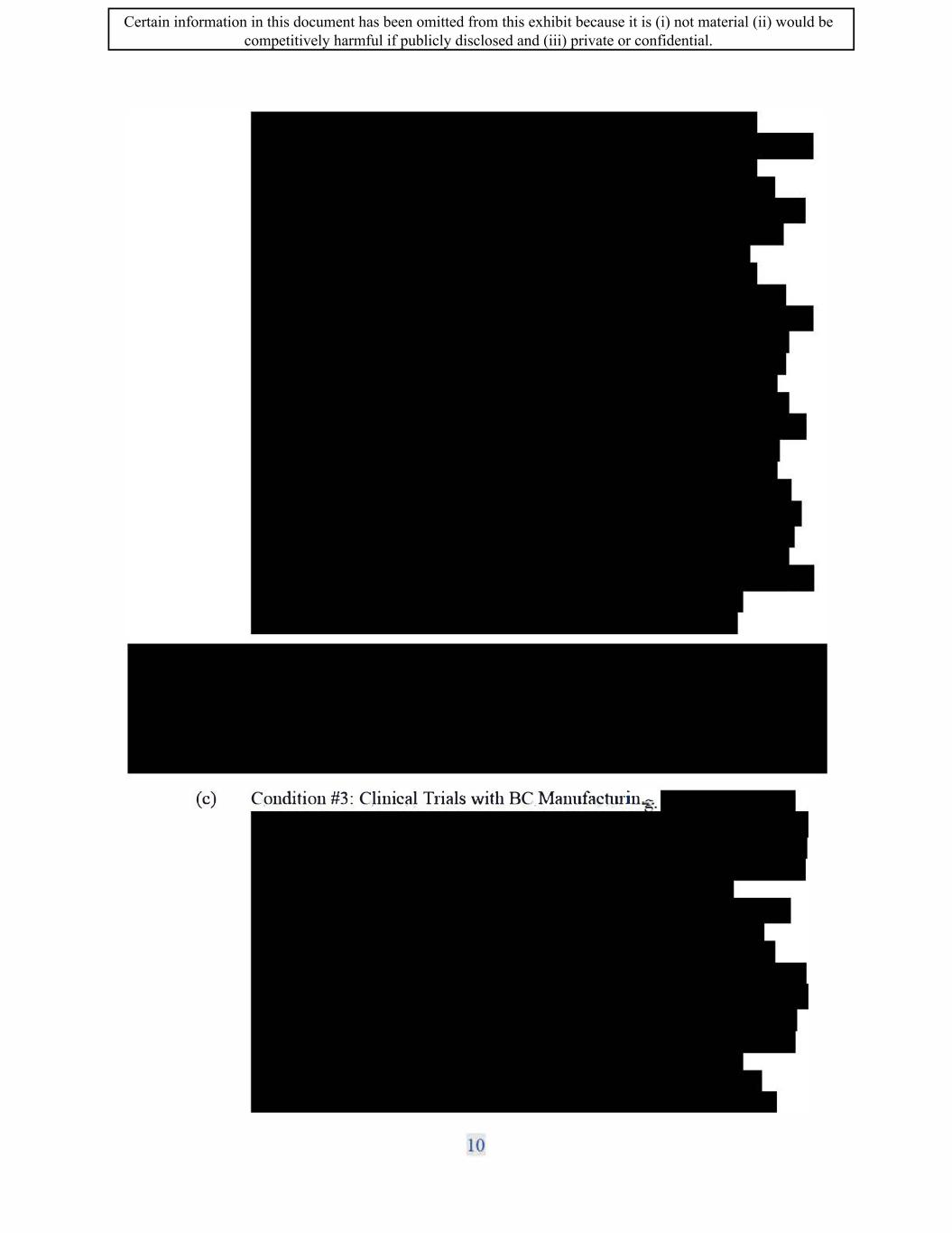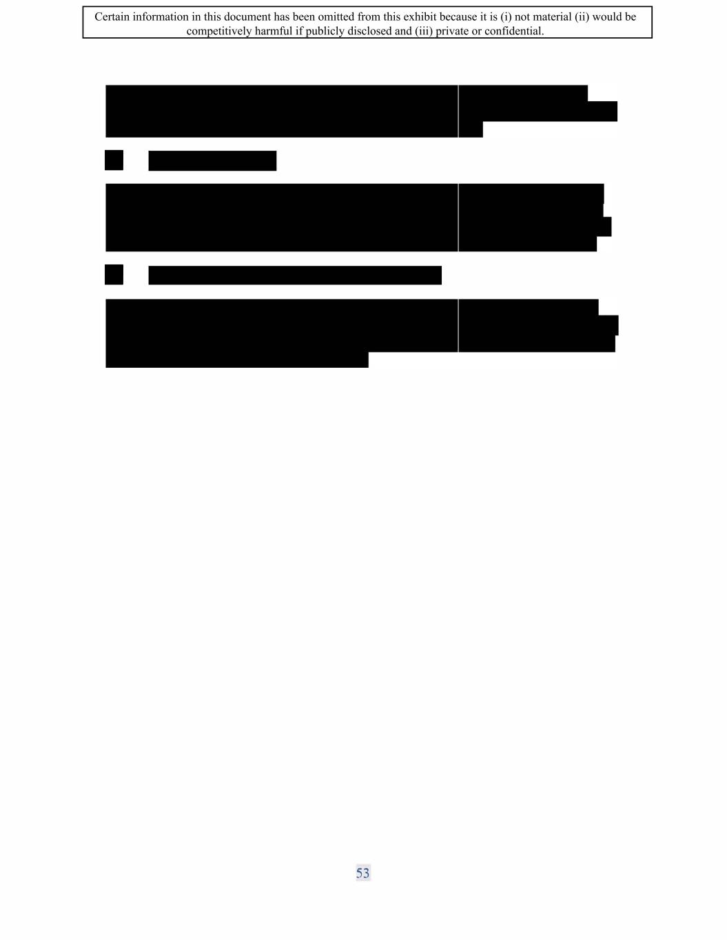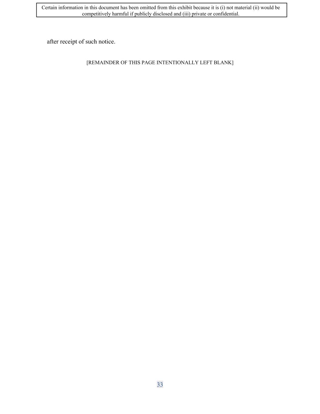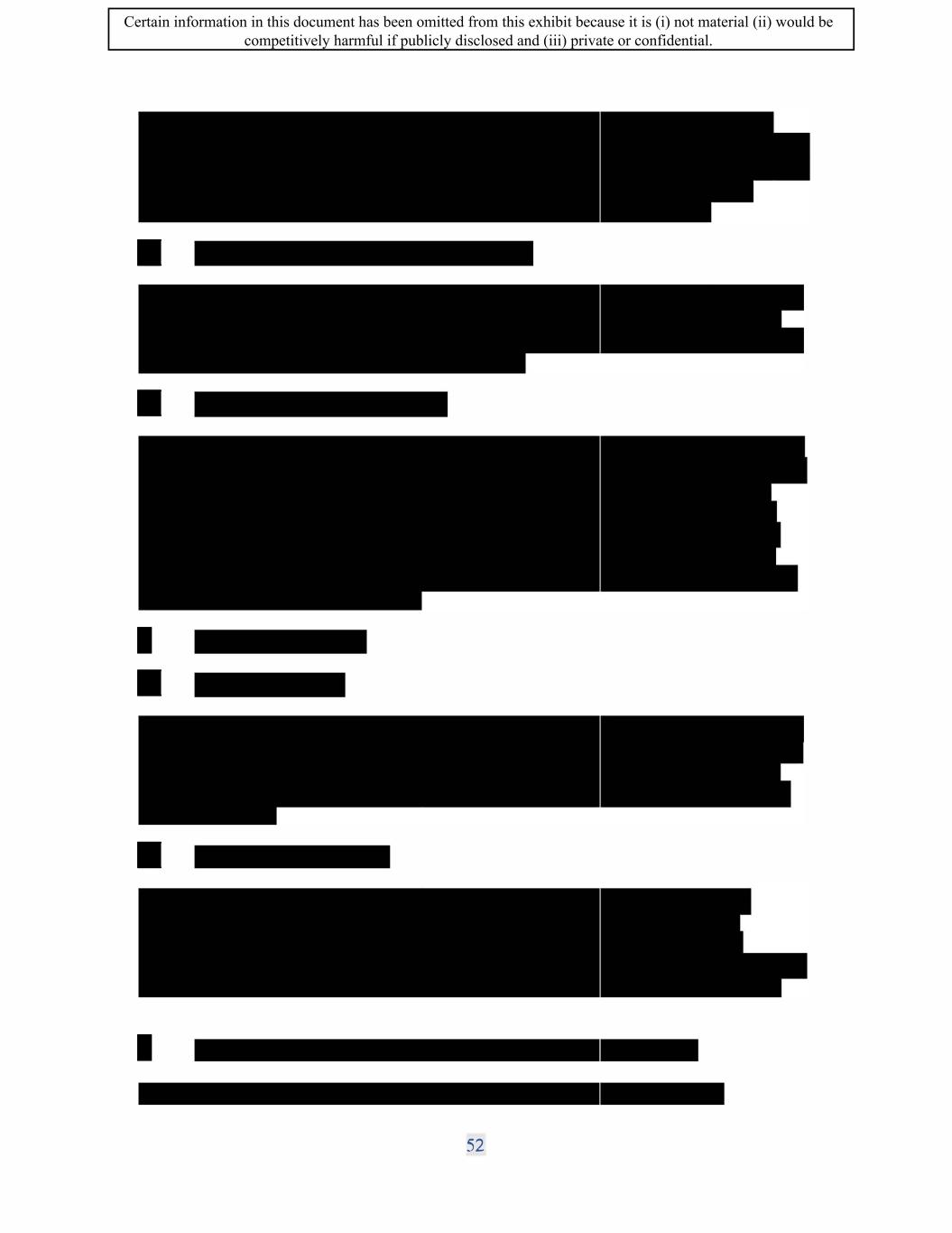 : Certain information in this document has been omitted from this exhibit because it is (i) not material (ii) would be competitively harmful if publicly disclosed and (iii) private or confidential.