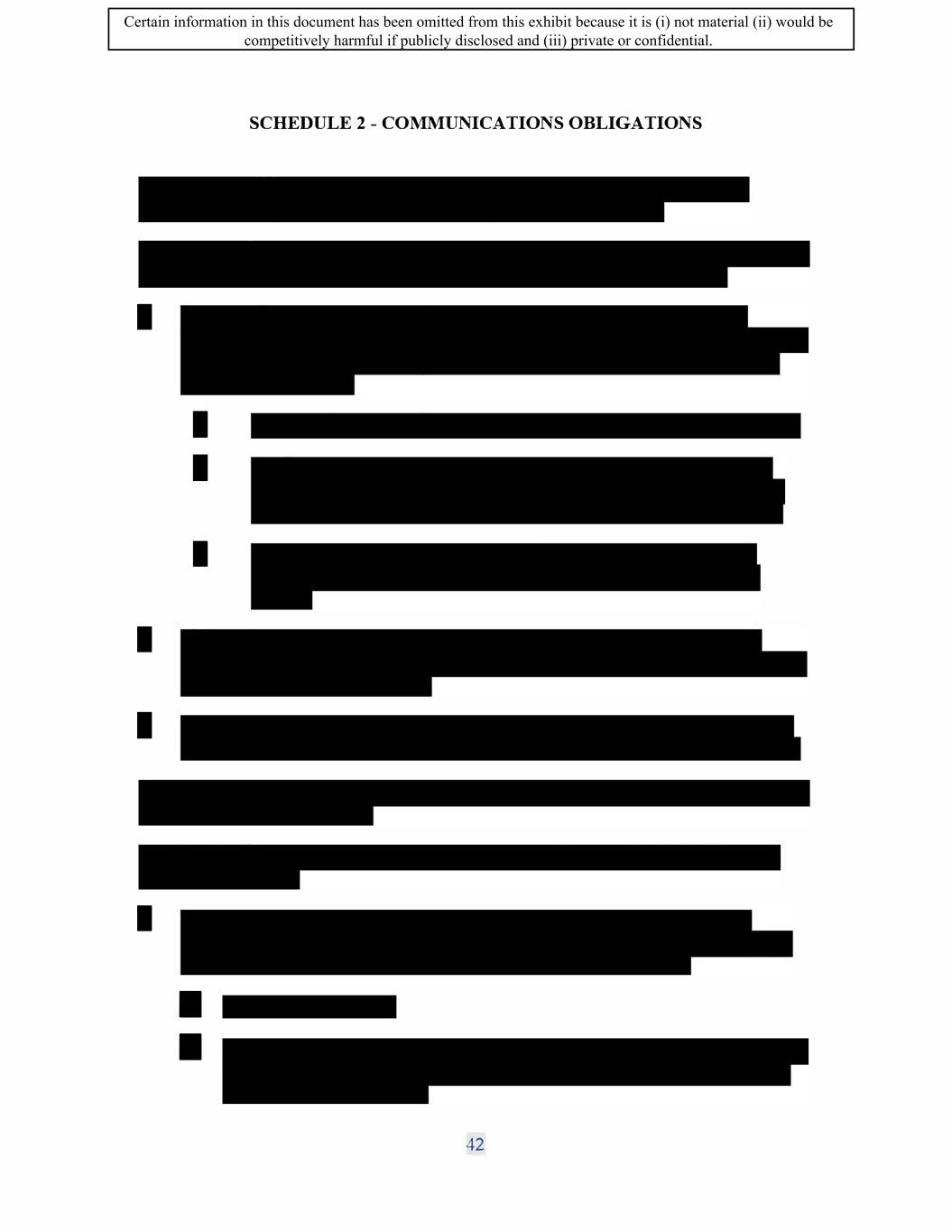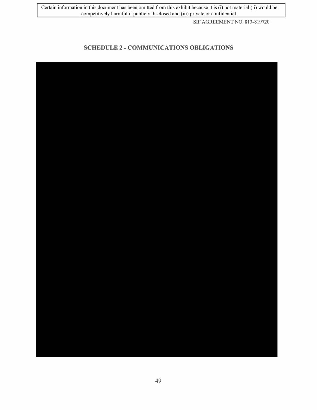 SIF AGREEMENT NO. 813-819720 SCHEDULE 2 - COMMUNICATIONS OBLIGATIONS 49 Certain information in this document has been omitted from this exhibit because it is (i) not material (ii) would be competitively harmful if publicly disclosed and (iii) private or confidential.
