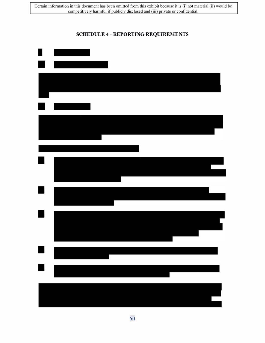 SIF AGREEMENT NO. 813-819720 SCHEDULE 4 - REPORTING REQUIREMENTS 58 Certain information in this document has been omitted from this exhibit because it is (i) not material (ii) would be competitively harmful if publicly disclosed and (iii) private or confidential.