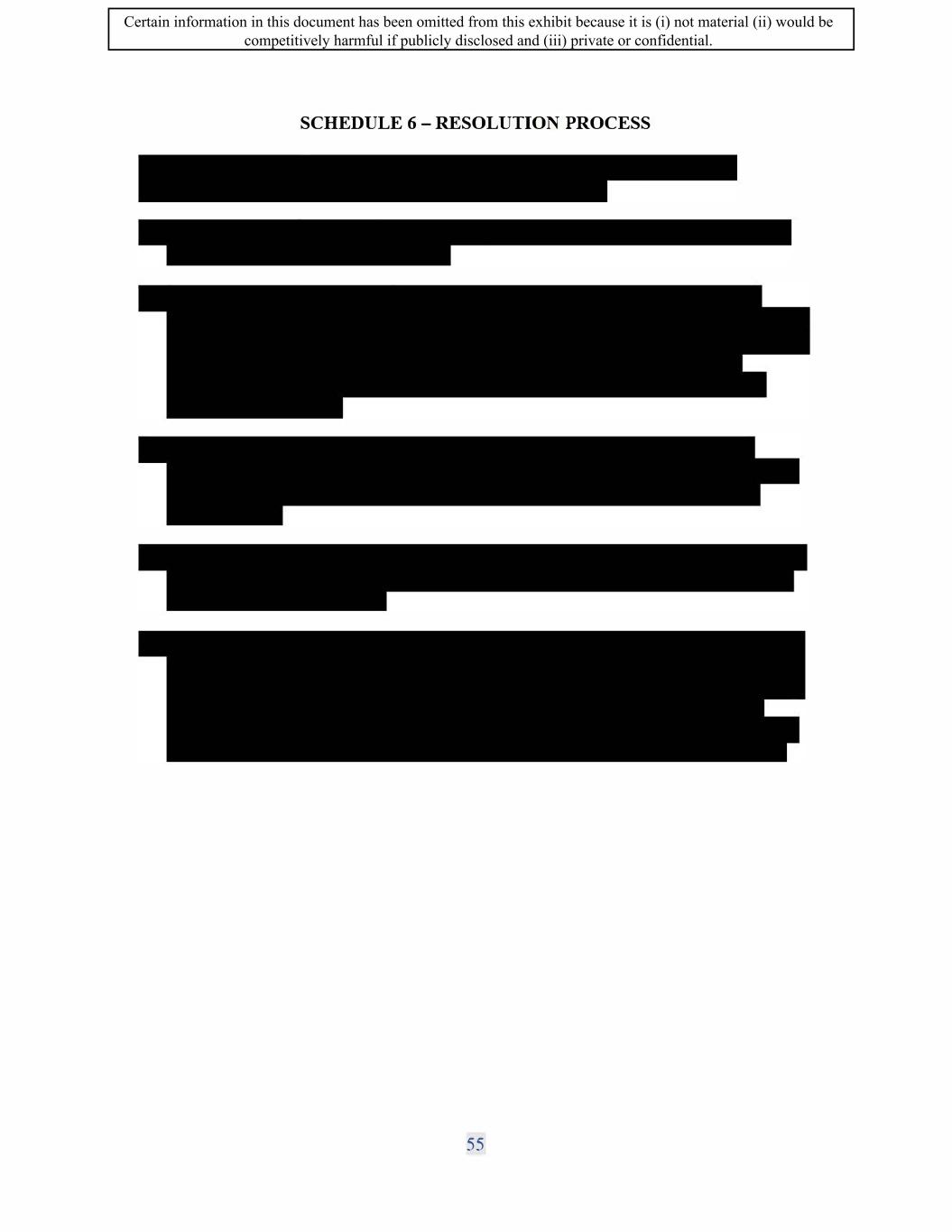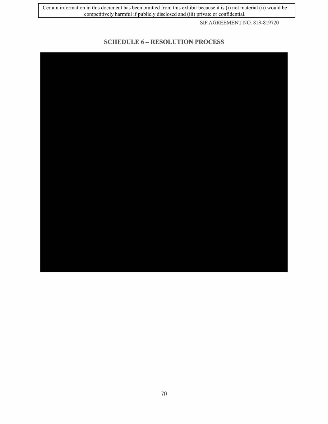 SIF AGREEMENT NO. 813-819720 SCHEDULE 6 - RESOLUTION PROCESS 70 Certain information in this document has been omitted from this exhibit because it is (i) not material (ii) would be competitively harmful if publicly disclosed and (iii) private or confidential.