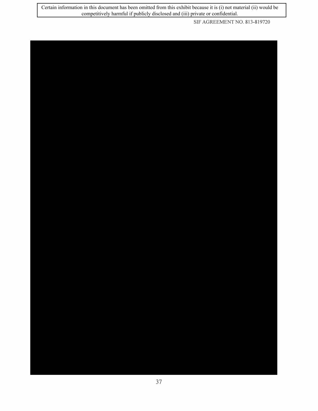 SIF AGREEMENT NO. 813-819720 37 Certain information in this document has been omitted from this exhibit because it is (i) not material (ii) would be competitively harmful if publicly disclosed and (iii) private or confidential.